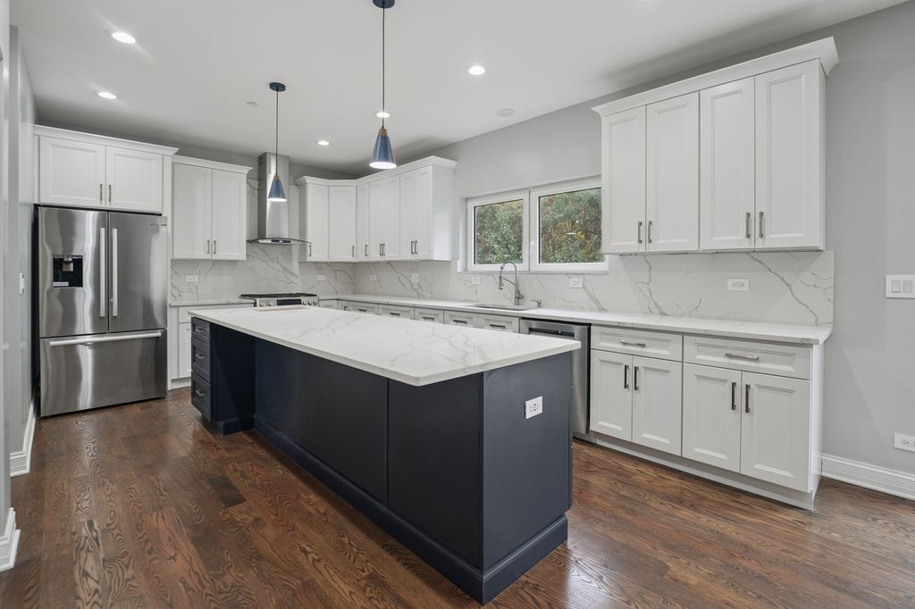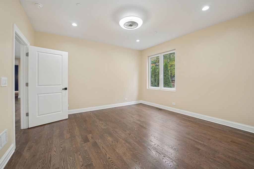 Brand new, custom built, energy efficient home with all the modern features (Dual zone HVAC, 2nd floor laundry, custom lighting) and flexible semi-open concept layout. Perfect for entertaining! Dual master suites w one on the main floor, allow for au pair or extended family. Bonus room on main floor for office/gym/study plus 4 generous sized bedrooms. Enormous 10 ft quartz kitchen island and butlers pantry will have you hosting with ease. Stunning tree lined views from every window make the space open and bright. Basement is roughed-in and ready for a theater, state of the art gym or epic recreation room and full bathroom. Side driveway with attached garage is great for unloading, enhanced curb appeal and clean front facade. Choose either Maine South or Maine East for high school.