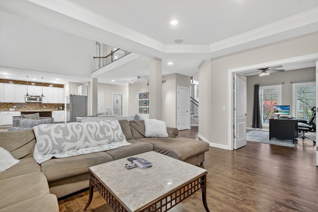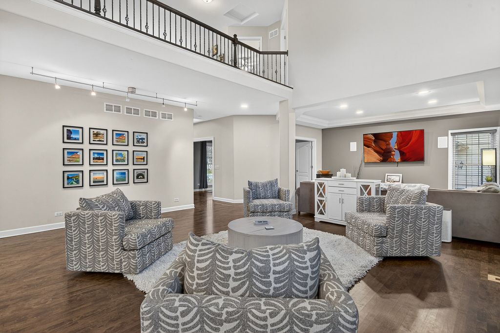 Experience exceptional luxury living at 910 Tipperary St in Gilberts. This expansive 4-bedroom, 2.5-bath residence offers 3,374 sq ft of refined design, modern upgrades, and an impressive, wide-open layout perfect for both everyday living and upscale entertaining. A dramatic foyer welcomes you with soaring vaulted ceilings and beautifully crafted wood stairs that set the tone for the rest of the home. The main level features rich hardwood floors, grand living and dining spaces, a spacious family room, and an open-concept chef's kitchen designed for style and functionality. A private main-floor office, large laundry room, and elegant powder room complete this level. Upstairs, retreat to an expansive primary suite with a walk-in closet and a spa-inspired private bath. Three additional bedrooms-each generously sized-along with a versatile loft/sitting area offer comfort and flexibility for any lifestyle. The fully finished lower level is an entertainer's dream, showcasing a custom wet bar, plush carpeting, full bathroom, and exterior access, creating the perfect space for gatherings, guests, or recreation. Immaculate, modern, and move-in ready-this exceptional property delivers the luxury, space, and design you've been waiting for. New roof (2022), driveway (2023), and hot water tank (2024)!