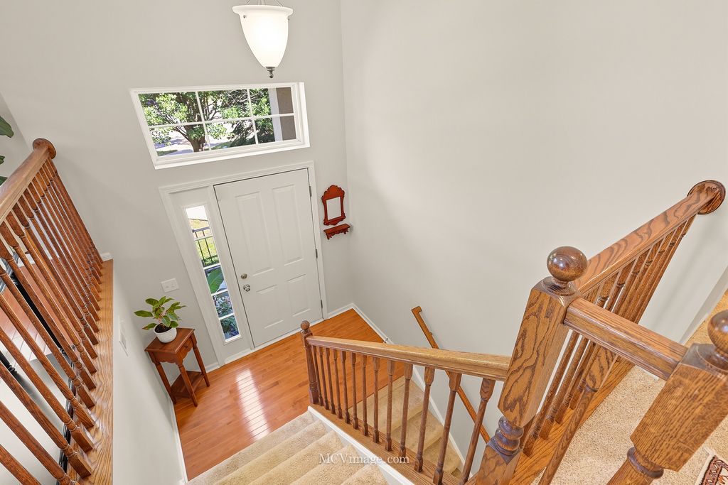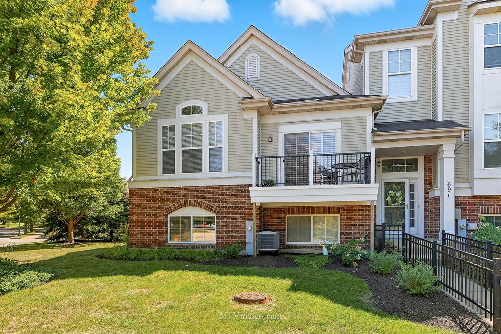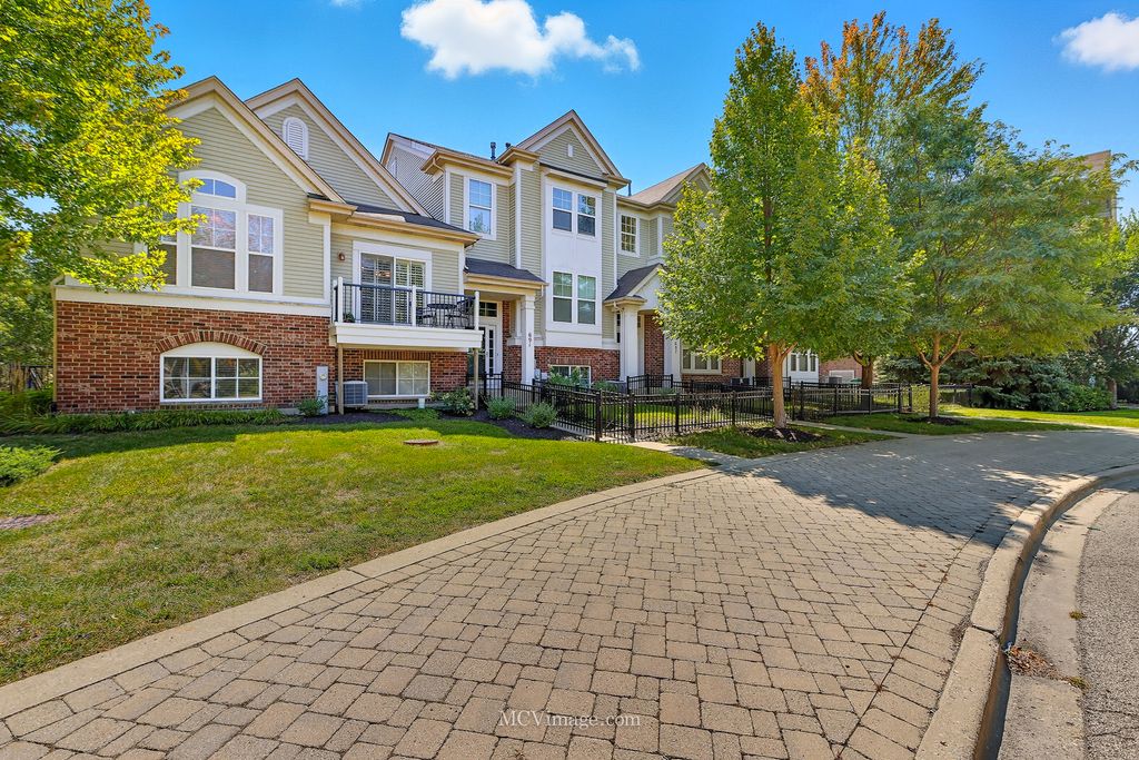 LOCATION LOCATION!! This well-maintained 2100 sf END-UNIT town-home, is walking distance to the train and Move-in ready, offering spacious living designed for comfort and style. The front door opens to fabulous hardwood floors, which lead up to the open living room/family room with large windows that fill the space with natural light. The cathedral ceilings and 9-foot ceilings throughout give the home a spacious open concept feel. Off the family room is the large kitchen/dining area, perfect for entertaining. The large kitchen is equipped with stainless steel appliances, granite counter tops, a comfortable high-top counter for added entertainment, tons of cabinet space, a pantry, and a spacious eat-in area. Two bedrooms are located on the main level, including a stunning primary suite with a walk-in closet, soaring ceilings, and an en-suite. The primary bathroom encompasses a large double vanity, a spacious soaking tub, and a separate shower. The bright lower level provides additional living space, with above-ground windows perfect for a second family room, a third bedroom, or an office. There is additional storage under the staircase, and an attached room to the lower-level living space ensures you will never run out of room. The storage room has rough-in plumbing, which allows for another primary bedroom with an en-suite bath and walk-in closet. Tiled spacious laundry room with a new water heater (2020) and furnace that are both well-maintained and serviced twice a year. The attached 2.5-car garage is perfect for the cold winters and keeping equipment out of the elements. Situated at the end of the units, this town-home provides a beautiful additional yard-like open area that offers scenic views from both the family room and entrance way. Nearby Fox Valley offers an abundance of shops and restaurants, easy access to I-88, and walking distance to the train. Don't miss the opportunity to call this YOUR HOME.