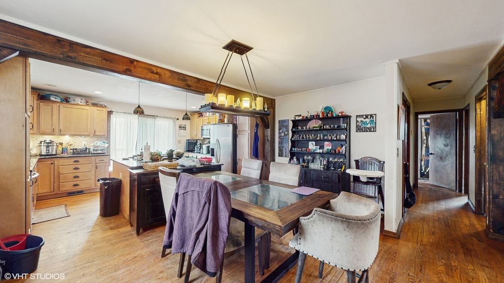 Welcome to 104 Channel Drive, a charming 0.86-acre waterfront property nestled along the scenic Fox River in Port Barrington, IL. This spacious 5-bedroom 2.1 bathroom home offers 2,696 square feet of total living space, 1,648 on the first and second floor, plus a 1,048 square foot full basement. Enjoy the convenience of a first-floor primary suite featuring dual closets, a private full bathroom with walk-in shower, and direct access to your balcony! The open-concept main floor seamlessly connects the living room, dining area, and kitchen, perfect for entertaining. A nicely sized power room rounds off the main floor plan. The 2-story outdoor space features a balcony, accessible from the 1st floor, and a deck, accessible from the walkout basement, to savor the tranquil river views. Additional highlights include a cozy fireplace, dual-pane vinyl windows, a 3-car detached garage, and a front porch to enjoy the scenic outdoors. Short sale, list price is the BANK APPROVED list price.