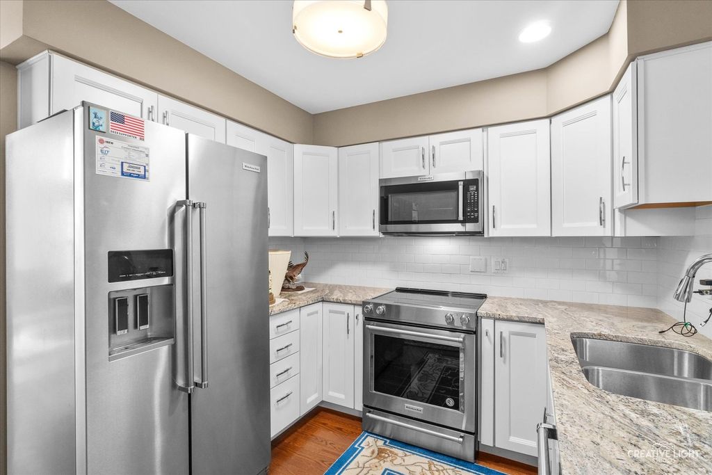Fabulous 3 bedroom town home in popular Cambridge Pointe. 1500 sq ft of awesome living space. Open floorplan with beautiful HWD floors, vaulted ceilings and tons of natural light. Perfect layout for living and entertaining. A private entry and open foyer welcomes you home. The oversized great room will hold all your friends and family. It features vaulted ceilings and a big skylight. Just off the great room is a dining area that offers a walk out to the new patio. The updated, eat-in kitchen features plenty of cabinet space and newer stainless appliances along with granite counters and a tile backsplash. The open staircase leads up to a large master suite with vaulted ceiling and dual closet areas. Down the hall are two more good-sized bedrooms too. The updated bath features dual sinks, a separate shower and a soaking tub. Fresh paint in almost every room makes this place move in ready. The unit is on a cul-de-sac and backs to common area open space offering beautiful views from the unit. Newer windows, HVAC, H2O heater, Appliances, Fixtures and more. Clean, insulated garage with epoxy floor. Enjoy maintenance free living in a great community. Cambridge Pointe consists of nice single family and attached homes. The location can't be beat. The complex offers walking trails and a community park. It is close to shopping, restaurants and park district facilities. Well maintained inside & out. This is a Best Buy! Hurry on this one.