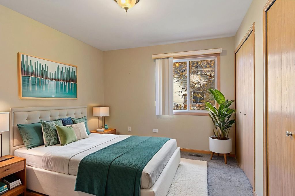 Welcome to this inviting first-floor condo in the heart of Crystal Lake! This spacious 2 bedroom, 2 full bath home offers comfort, convenience, and a peaceful setting. Step inside to a bright and freshly painted family room filled with natural light and a large kitchen area featuring a sliding door that opens to a side yard. Enjoy morning coffee or evening sunsets on the private back patio, which overlooks a large open green space for added tranquility. The primary bedroom offers exceptional storage with double closets and an ensuite bathroom. A dedicated laundry room adds everyday convenience, and there is ample storage throughout the unit. 1 car, shared garage included. Located close to shopping, parks, and commuter routes, this home combines easy living with serene surroundings. HOA has recently re-stained patio wood & entrances, re-painted all doors, installed new siding on all units & resealed parking lots.