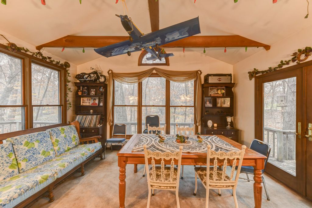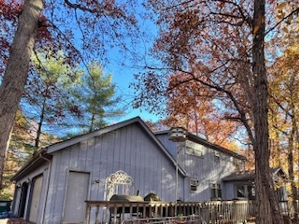 Interior photos next week after removal of interior stuff! Awesome location and wooded. Large ravine off rear of home with huge deck off rear. Lots of privacy. This 2 story with vaulted ceilings has main level master bedroom suite(including full bath). Huge LR/Family Room with fireplace. Kitchen dinette and formal dining. Upstairs 2 spacious bedrooms. Full unfinished basement is over 1500 ASQ of additional space. 3 season room off Dining Room. Located rear of property with unbelievable view of wooded ravine with access to large deck! Feel like you are in the North Woods of Wisconsin! 3 yes a 3 car attached garage with ample electric if you work on cars or wood working! Mechanics dream! Brand new roof and updated Furnace, Air and Hot Water Heater. Guts of home are great. Owner is currently cleaning out lots of stuff so please pardon the slight mess. Home does need new carpeting and some decor updates and is priced to reflect this. Circle asphalt drive and plenty of parking. Home is 2000 plus asq of living space plus 1500 Full basement. Fast closing and immediate possession for new buyer. When viewing once again be aware seller is emptying home and some furniture would stay if wanted. Will go FHA or VA.