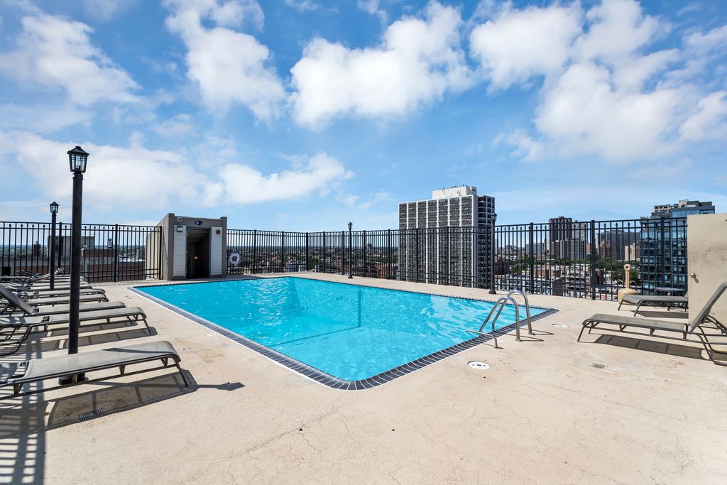 Welcome home to 450 W Briar place! Perfectly placed just one block off Lake Michigan and close to everything, this is truly urban living at its finest! Walk to Mariano's, Belmont Harbor, Wrigley Field, multiple theaters and all the shopping, dining and public transportation that this incredible neighborhood has to offer! Rare opportunity to own the largest and only 2 bed - 1.5 bath in the building! Incredible floor plan with loads of updates, including a modern kitchen with dark wood and glass cabinetry, granite countertops, custom backsplash and island that's open to the expansive living space featuring floor to ceiling windows with absolutely stunning North views! PRIVATE IN UNIT LAUNDRY! Step outside to the balcony that spans the entire length of the condo for even more living space and take in the view of the Lake to the East. Head down the hallway to access the home's 2 spacious bedrooms including the primary, with a large walk-in closet with custom organizers! 2nd bedroom is currently used as an office/guest room and has private access to the balcony as well. Building has an amazing rooftop pool and sundeck, with breathtaking lake and city views, as well as a fitness center. Very easy access to Lake Shore drive and endless parks, walking and biking paths along the lakefront. Welcome home!