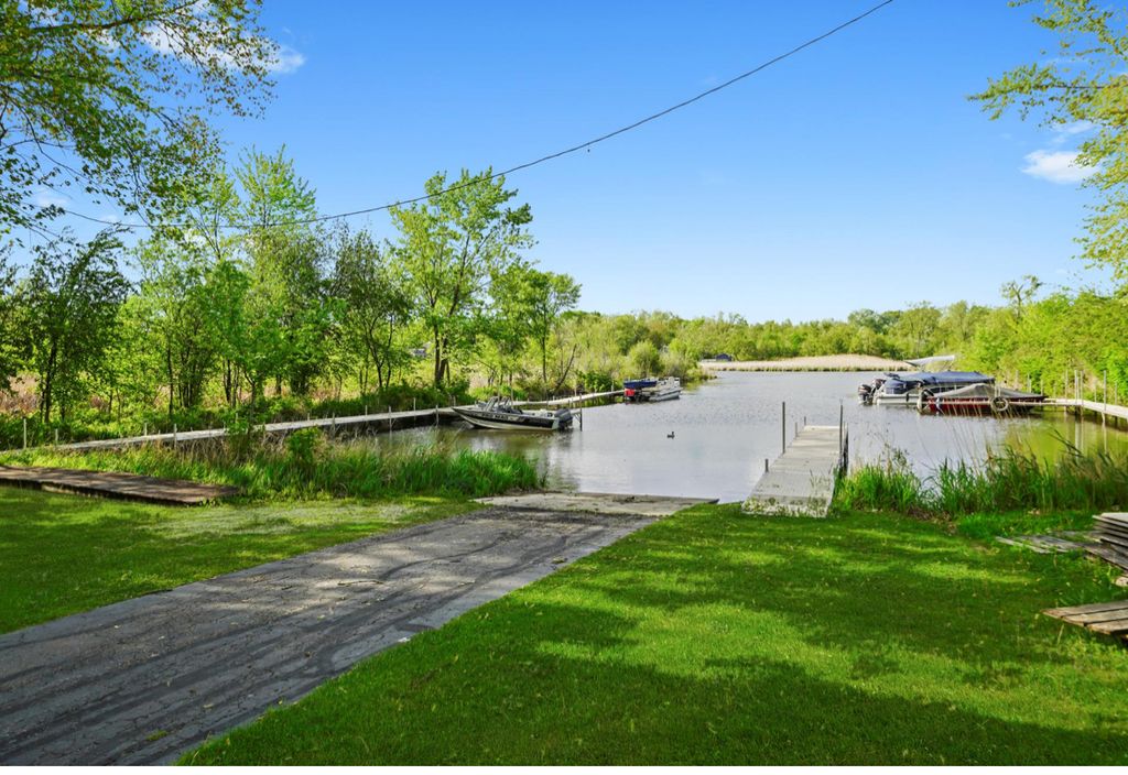 ***Visit Hubzu for minimum bid amounts & start & end times. AS IS, Offers MUST be submitted @ Hubzu. No emailed or faxed offers. See Hubzu for details. Buyers' premium paid at closing by buyer. See Hubzu to place an offer. Inspect before offer, no contingency, cash offers only. Consecutive on-line auction until seller meets undisclosed reserve.*** Welcome to this beautiful 3-bedroom, 2-bath home. Inside, you'll be greeted by sun-drenched living spaces that showcase the home's open floorplan and inviting atmosphere. The spacious white kitchen features a large island and stainless steel appliances, and opens to a dining area and large family room - ideal for both daily living and entertaining. The main level includes a generously sized bedroom or office, a full bath, and a convenient laundry room that also provides room for storage. Upstairs, two additional bedrooms and another full bath provide privacy and comfort for family or guests. Set on a large lot, the property offers ample space to build a garage. Enjoy relaxing on the patio, gathering around the firepit, or storing your lake gear in the storage shed. New roof and water purification system. As a resident of the Channel Lake Bluffs subdivision, you'll enjoy exclusive access to the Chain of Lakes-including a private beach, boat launch, marina with rentable slips and a peaceful park-just steps from your door. Live every day like you're on vacation in this bright, updated home. Don't miss this exceptional opportunity!