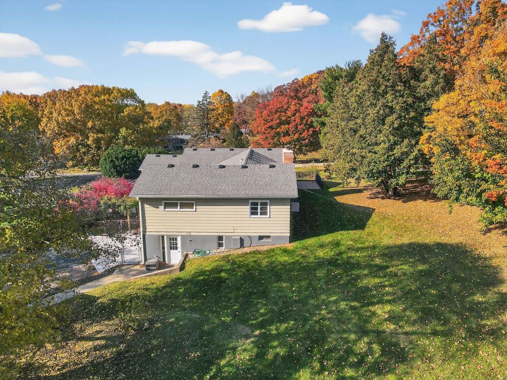 VACATION AT HOME in this Entertainer's Paradise! Fabulous, raised ranch with so many unexpected EXTRA's! You'll be delighted with the bright open floor plan of this breathtaking home featuring hardwood floors, expansive living room with gas fireplace, and leads to a gorgeous, renovated, upscale kitchen, complete with peninsula breakfast bar, gray & white cabinets, stylish ceramic tile, and more storage, prep & serving space than you could ever imagine! Adjacent dining area lends well to casual OR formal dining to match your specific taste and needs. Steps away is a 4-season sunroom that works perfectly as a flex space: TV Room, formal dining, den, main floor office, playroom, you name it! Completely renovated bathroom brings this home to a new level featuring walk-in shower, on-trend subway tile, double vanity, and ceramic tile floor. 3 comfortable bedrooms with generous closet space are sure to please! Main level "wall of windows" overlook an outdoor courtyard boasting a charming patio, IN-GROUND HEATED POOL, and 1.25 ACRES of a lovely private yard to enjoy! Lower WALK-OUT level includes BRAND NEW CARPET, a spacious Family Room with gas fireplace, bar, 4th bedroom, office, workshop, convenient pool equipment room, laundry room/dressing room for wet swimsuits, and full bath! Lower level seamlessly connects to the perfectly placed pool & courtyard paver patio with a shaded pergola! SO MANY UPDATES 2018-2025 which include: front stonework, pool heater/sand filter, house plumbing, drywall & electric in bathroom & kitchen, water heater, garage door openers, central air, many windows, fence and MORE! Additional fenced area off of the front patio provides a separate space for relaxing while you view the exceptional setting and cul-de-sac location of this unique and versatile retreat!