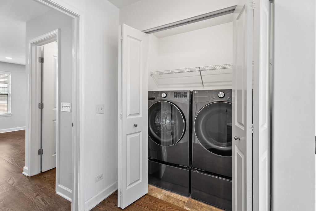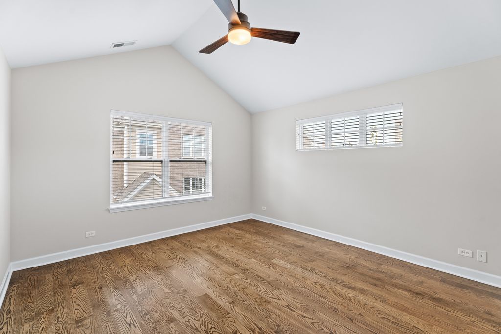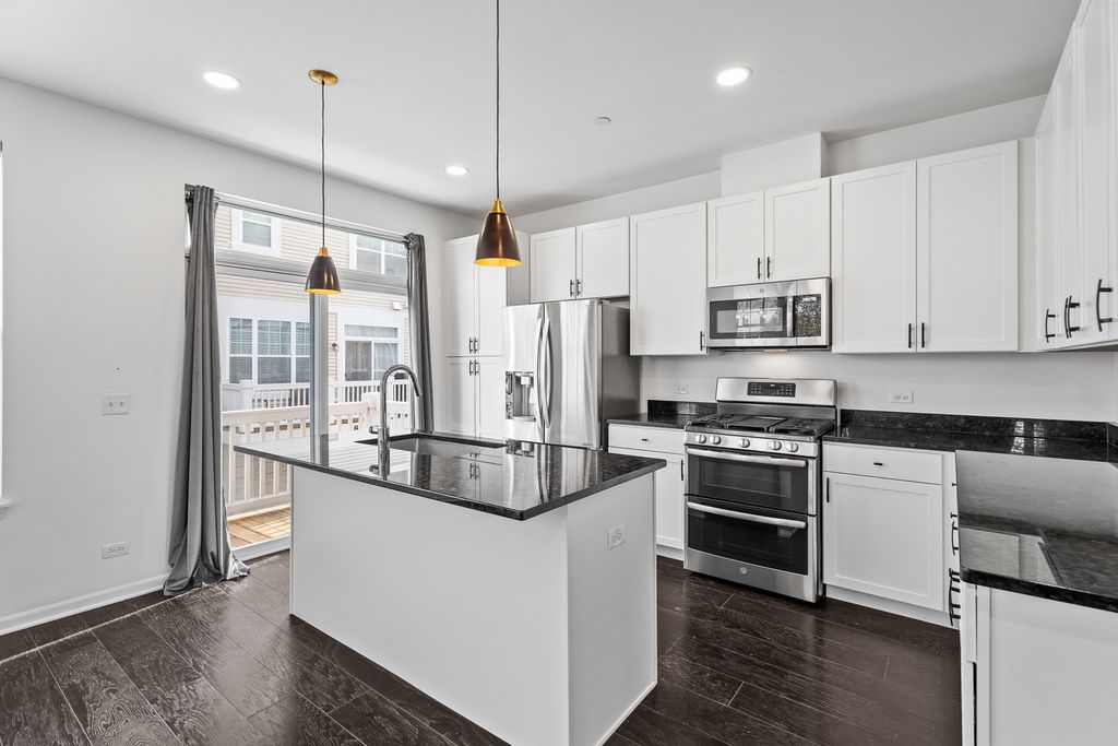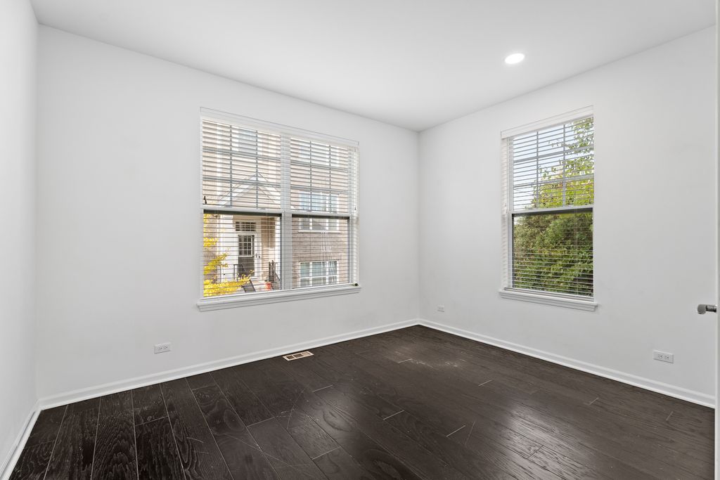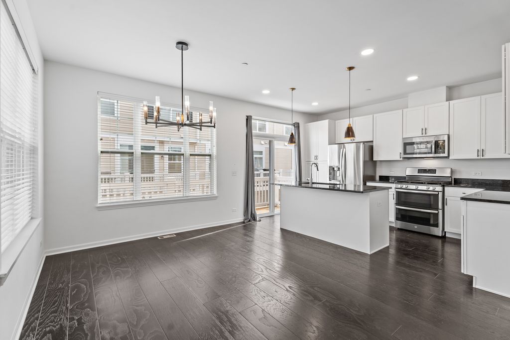 Downtown Des Plaines end-unit townhome within walking distance of the Metra station, bus stops, and all the vibrant restaurants and shops. Two bedroom suites + office + flex room - for the flexibility you want and the space you need! The open main level centers on a sunny living/dining area with a fireplace and a slider to the balcony, a great space for grilling. The white kitchen features a large island and stainless-steel appliances, including a new Bosch dishwasher (2024). Also, there are a glass-door office (which could be converted to a bedroom) and a powder room. Upstairs, two private bedroom suites each include a walk-in closet and full bath, plus a convenient laundry with recently replaced LG washer and dryer (2023). The lower level offers a flex room (can be an additional office, gym, or family/recreation room), a storage closet, and interior access to the attached 2-car garage with a new smart opener (LED, built-in camera, remote close). Updates include: new hardwood on stairs and second level, new Kohler toilets in bedroom bathrooms, LED can-light conversions, Ring doorbell, Nest thermostat, added lower-level lighting, refreshed balcony deck, new fans in bathrooms, and a new powder-room vanity. Move right in - schedule your private showing today!