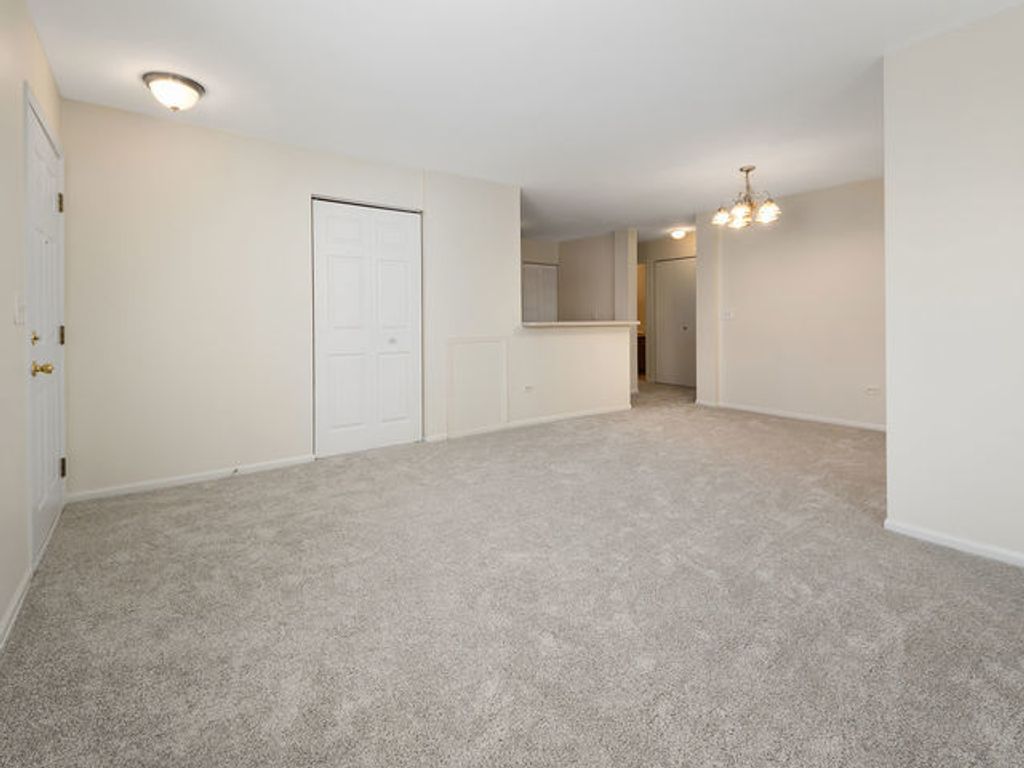 Welcome to this bright and inviting ranch-style 2-bedroom, 2-bath first-floor condo with a detached 1-car garage and assigned parking space. Freshly painted and new carpeting throughout and new vinyl flooring in the kitchen and hall bath, this home is move-in ready! The open-concept kitchen flows seamlessly into the living and dining areas-perfect for entertaining or relaxing. The spacious primary bedroom features a large walk-in closet and its own private bath. The second bedroom offers generous space and another large closet. Enjoy the convenience of in-unit full-sized washer and dryer. This rentable unit is located near scenic walking paths, a lake with two piers, parks, shopping, and more. Don't miss this fantastic opportunity!
