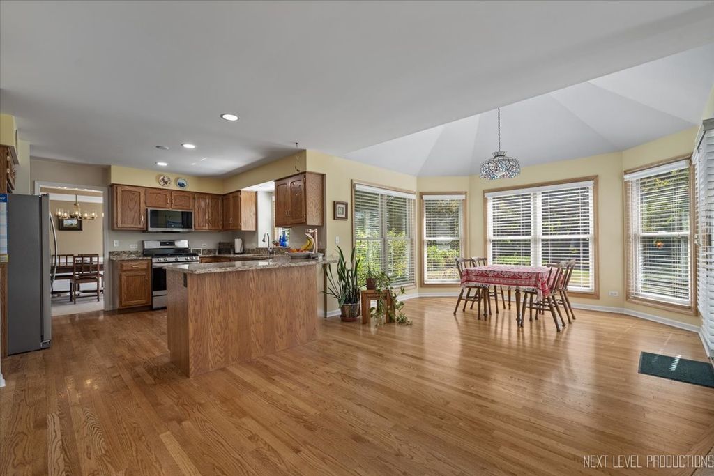 Ashbury home on a cul-de-sac! Rare north facing home on a premium cul de sac .5 acre lot. Home has been meticulously maintained. Enter to a two story foyer with a split staircase. The first floor den is conveniently located off the foyer. The vaulted living room adds style and leads to the large dining room with a tray ceiling. The entire home has white trim with newer carpet upstairs. The kitchen features granite countertops, and new stainless steel appliances(see feature sheet). The sunroom is multipurpose and could be a large eating area, with views of the amazing lushly landscaped back yard. The family room also overlooks the deck and rare oversized back yard and features a cozy fireplace. The large laundry room is on the first floor. Upstairs find everything you need, a master bedroom with an extra large ensuite bathroom. The master also has two walk in closets. Three more bedrooms, one has a 13 x 6 closet. The hall bath has a double bowl vanity and a door separating the tub/shower area. The garage floor has an epoxy finish and a bump out storage area. There is a sprinkler system and the yard has many fruit trees and beautiful plantings, including flowering spring bulbs. New furnace and air conditioner 2024, new roof 2020 , for more updates and improvements see feature sheet. Ashbury is a pool community, zero-depth with a water slide, sand play area, sand volleyball, and a clubhouse. Patterson Elementary is in the subdivision, Gregory Middle is in the next subdivision, and Neuqua Valley High School is 1.5 miles away. Frontier Park is nearby as well as the Library, shopping, movie theatre, and dining.