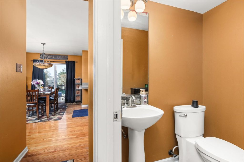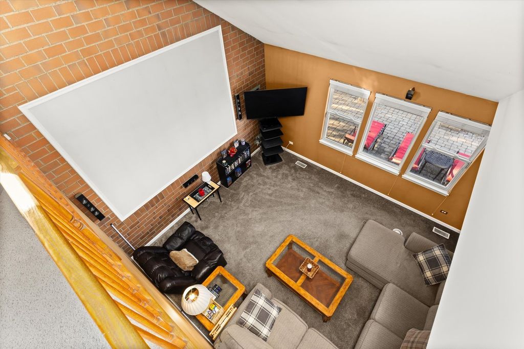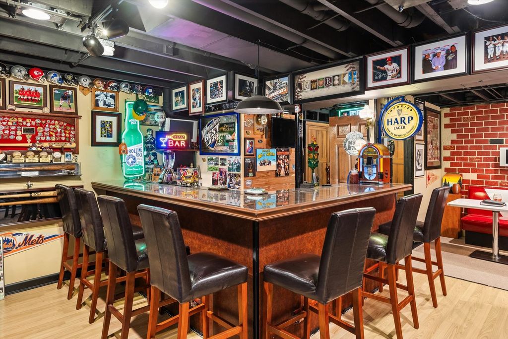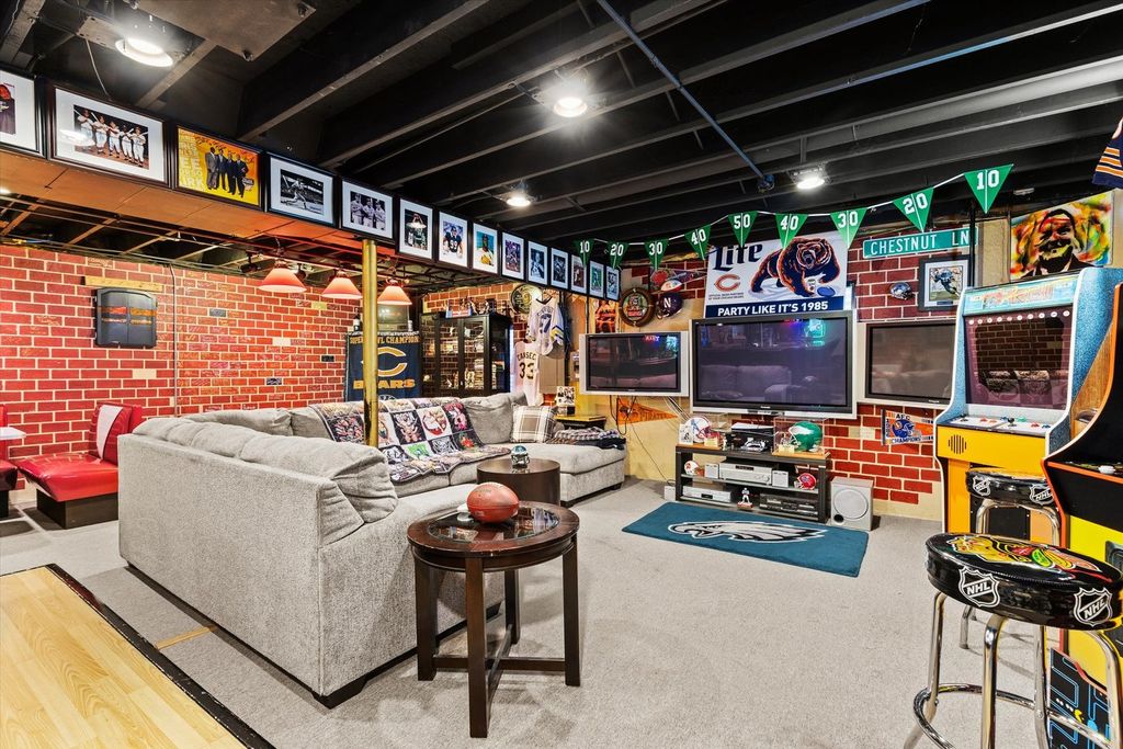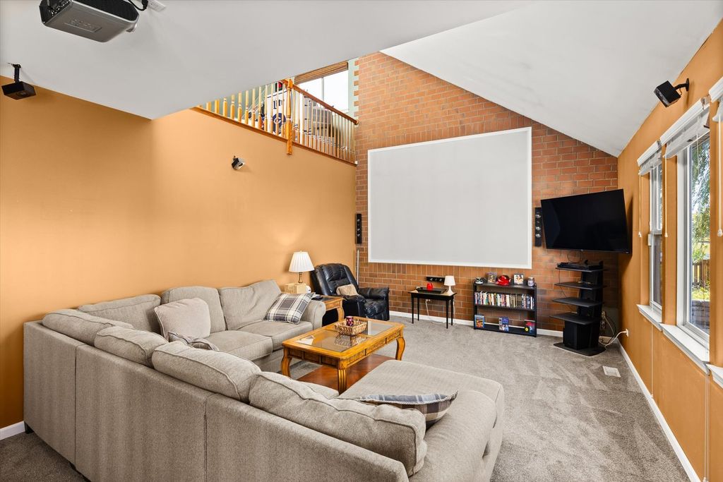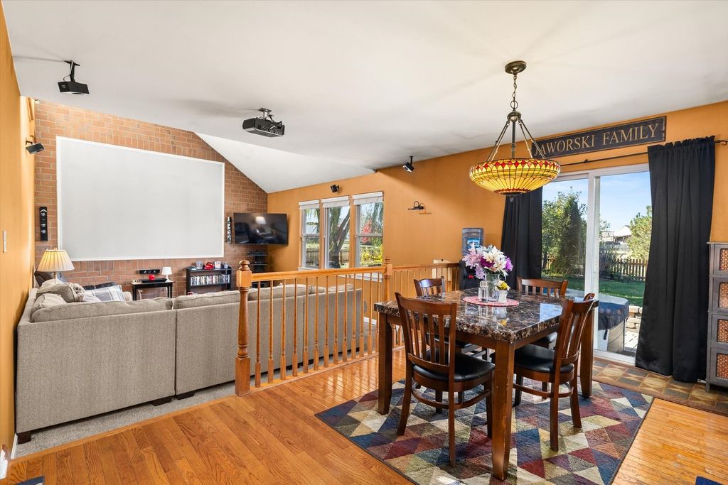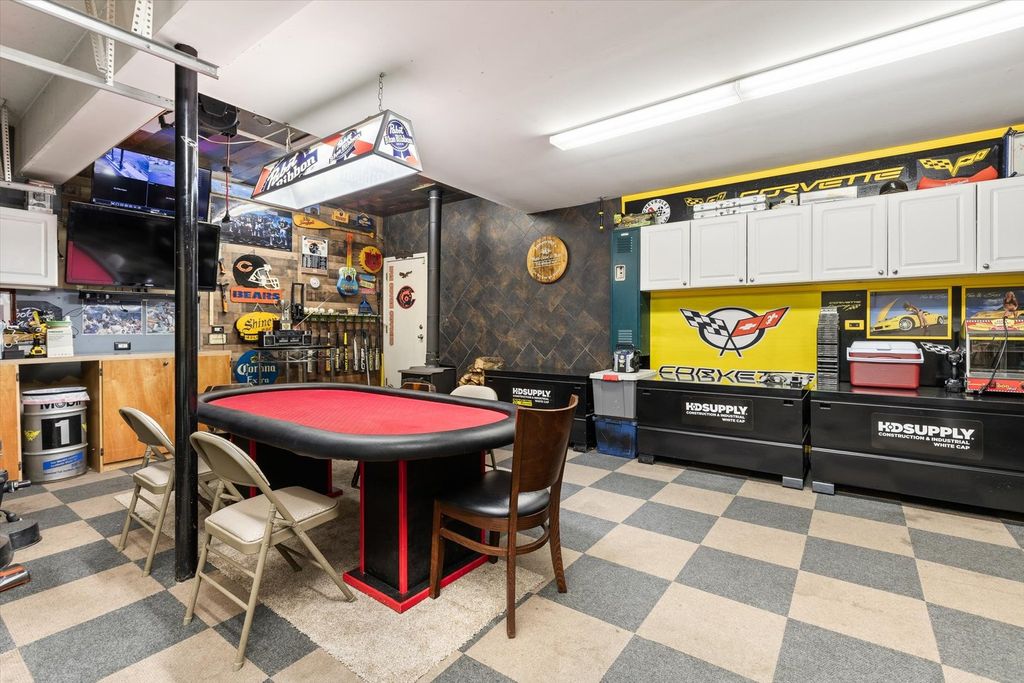 Spacious and inviting, this 4-bedroom home offers 2 1/2 baths, a fully finished basement designed for entertaining, and an incredible backyard oasis. The sunken family room impresses with open ceilings, a brick accent wall, and a built-in projector and screen-perfect for movie nights at home. The kitchen features a large island and stainless steel appliances, with the stove, refrigerator, and dishwasher replaced within the last two years. The original dining room is currently used as a home office, both the office and living room have been updated with luxury vinyl plank flooring. Upstairs, you'll find four generous bedrooms, a 19x13 loft overlooking the family room, convenient second-floor laundry, additional bathroom and a spacious 13x16 primary suite with full, private bath. The finished basement is a true gathering destination, complete with a full bar (seating for seven), multiple TV setups, lounge spaces, a bathroom urinal, utility/storage room, Drylok walls, and upgraded electrical featuring a 200-amp service with a 100-amp subpanel. The massive three-car garage is also finished and adaptable for workshop or entertaining use, featuring carpet tile flooring, televisions, and a wood-burning stove. Step outside to your private outdoor retreat. Enjoy the pool with a 20x10 deck, beautifully landscaped yard, and a 62x29 multi-surface patio combining paver, concrete, and maintenance-free materials. Additional outdoor amenities include a built-in grilling station with bar seating, hot tub, fire pit, and lounge areas. The oversized, fully fenced yard backs to open green space and a pond-providing privacy and serene views. Additional features include 3/4" plywood flooring in attic storage areas, all mounted flat-screen TVs included, and a NEW furnace and air conditioner. This home combines everyday comfort with the amenities of a private entertainment retreat-inside and out.