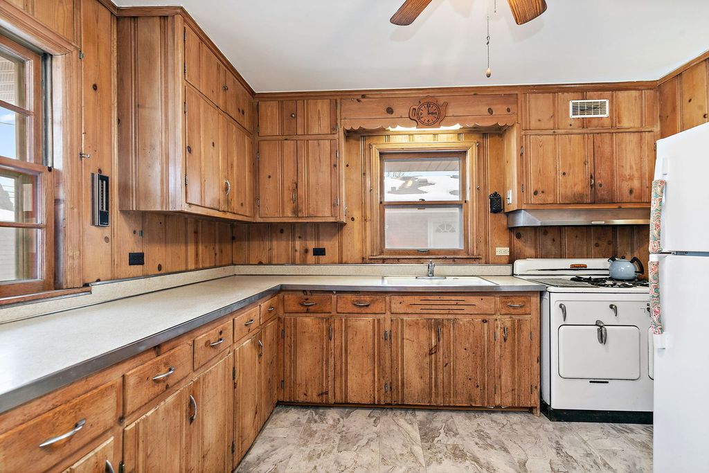 Incredible opportunity to buy a SOLID BRICK home in a great location! Adorable mid-century ranch with great bones boasts ample room sizes and an abundance of light. 1156 SF of living space, hardwood floors under the carpet in the living room and three main-floor bedrooms, and a full FINISHED basement doubles your square footage with a rec room, 2nd bath, and multiple storage rooms! So many charming features that you just don't see in newer builds! The kitchen boasts the original range, a Dutch door, pocket door, and clever storage with a hidden pantry wall right where a small table fits. Bring your design ideas to this blank slate! Washer and dryer stay! 2-car garage for plenty of storage. Roof: 2018. As-is.