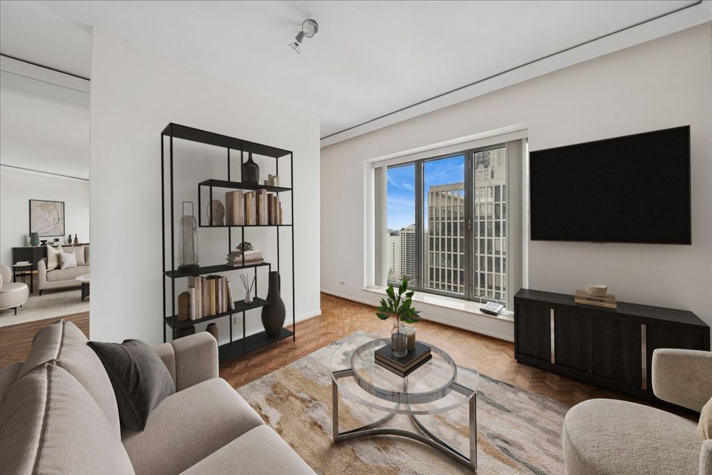 Spectacular location, 1/2 block from the beach and steps to the shops on Oak Street! This spacious 2 bed plus Den, 3.1 bath unit boasts 1830 square feet of living space and spectacular city views from every window. Beautiful wood parquet floors grace all the living areas. Bedrooms are carpeted, with wood parquet under the carpeting in the second bedroom. The eat-in kitchen has granite counters, and a comfy breakfast nook! The spacious Primary Suite has a large walk-in closet, and separate his and her baths. There is in-unit laundry, multiple spacious closets, and additional storage in the building. Valet garage parking is available for a monthly charge, guest parking available. This full-amenity building has 24/7 door staff, onsite management, indoor Olympic size pool, exercise room, a spectacular rooftop sundeck, and impeccable 24 hour service. THIS PROPERTY IS BEING SOLD AS-IS.