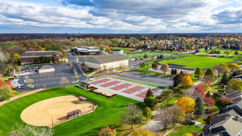 Custom-Built Two-Story in Desirable Forest Trails Subdivision. This location compares to none-backing to both the Illinois Prairie Path and Great Western Trail, offering both privacy and scenic views. Step inside to a welcoming two-story foyer that sets the tone for the home's impressive design with gleaming wood floors. A front den with built-in shelving provides the perfect home office or reading nook, while the open living room features large windows that fill the space with natural light. Double doors lead to the formal dining room with sliding glass doors opening to the expansive deck-ideal for entertaining with gas grill and heat lamp. The chef's kitchen boosts ample cabinetry, a spacious island with seating, gleaming granite countertops, and a double oven and a charming window seat over looking the backyard. It flows seamlessly into the family room with vaulted ceilings, where a stunning Jotul wood-burning fireplace is flanked by custom bookcases, complemented by skylights and a large picture window overlooking the backyard. A spacious mudroom with double closets connects to the three-car garage, offering plenty of storage and functionality. A conveniently located half bath completes the main level. Upstairs, you'll find an impressive primary suite featuring vaulted ceilings and an adjoining sitting room with its own closet-perfect for a private office, nursery, or relaxation space. The fully updated primary bath is designed to impress, showcasing double sinks, illuminated vanity mirrors, a walk-in closet, a soaker tub overlooking the backyard, and a luxurious shower with body sprays, rainfall shower head, and handheld wand with glass doors, detailed tile surround, and heated tile floors. Three additional generously sized bedrooms-each with vaulted ceilings, large closets, and new carpet-share a beautifully updated hall bath featuring double sinks, a tiled tub surround with glass doors, tile floors, and modern finishes throughout. The fully finished basement offers exceptional additional living space, including a large recreation room, a fifth bedroom, a third full bathroom, a laundry room, and a dedicated storage room-perfect for guests, hobbies, or extended family living. Located in the sought-after Forest Trails Subdivision within highly rated District 25 schools and just minutes from parks, forest preserves, and Wheaton Academy-this home offers the perfect blend of comfort, craftsmanship, and convenience. Updates include: 2025 - New carpet (bedrooms/stairs) and new washer/dryer; 2019 - Bathroom remodels; 2018 - Kitchen cabinets painted; 2017 - New front door; 2015 - Pella windows , Painted cedar siding; 2007 - Roof with 50-year shingles. If you're seeking a close proximity to all that West Chicago has to offer, look no further! Make this your next move!