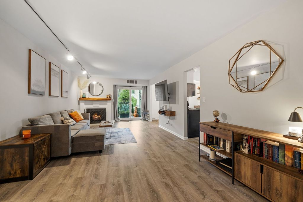 SELLERS ARE OFFERING A HOME WARRANTY FOR ADDED PEACE OF MIND AND A $1,000 CARPET CREDIT FOR THE PRIMARY BEDROOM. Inviting first-floor condo offering the perfect mix of comfort and convenience! Enjoy easy access with no stairs and a bright open layout. This freshly painted condo offers many updates including an updated kitchen with quartz countertops, stainless steel appliances, and subway tile backsplash. Additional cabinets have been added for extra storage and countertop space. The living room centerpiece-a fireplace updated with new tile and a custom mantle, adds warmth and charm to the space. The primary bathroom features an updated shower and modern vanity. New LVP flooring throughout. Three sliding doors open to an L-shaped patio, creating two separate outdoor areas offering flexible options for seating, dining, and outdoor enjoyment. Unique opportunity: this is the only unit in the building featuring IN-UNIT LAUNDRY. Monthly assessments include gas, water, waste, exterior maintenance, lawn care, snow removal, and yearly pest control. Enjoy long, hot showers, wash those clothes whenever you need, and light a fire every night during those chilly winter months, all without the worry of rising water or gas costs. Additional features include a one car garage and two storage spaces. Newer roof and HWH (communal).