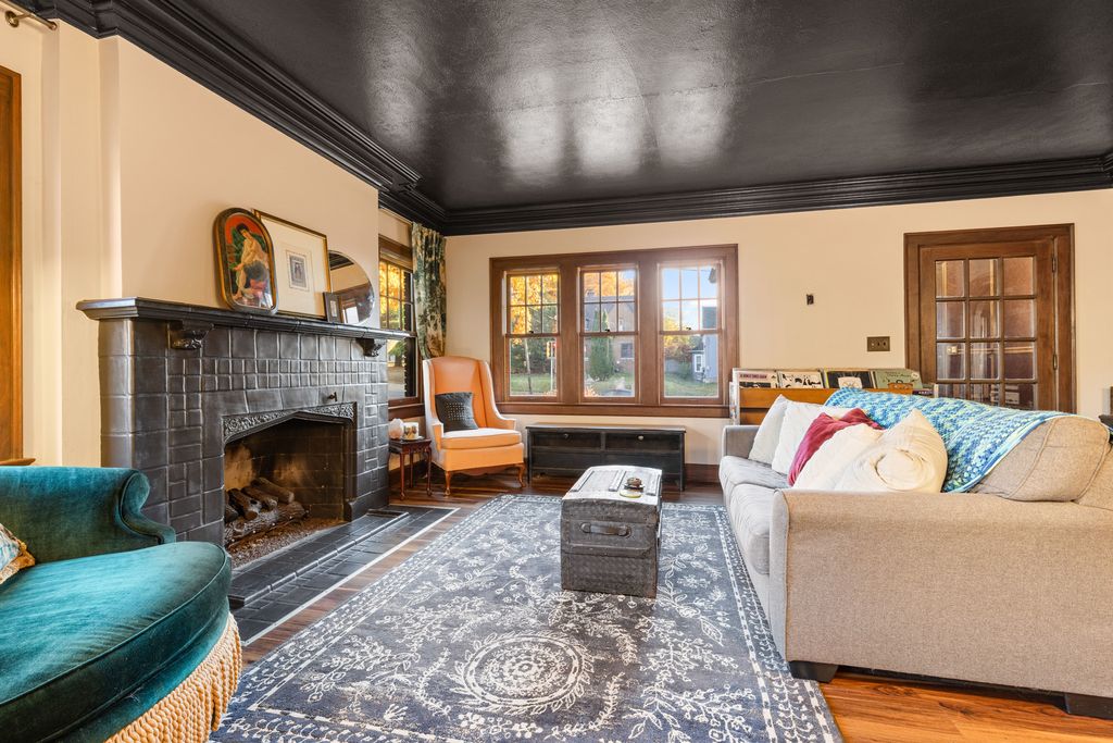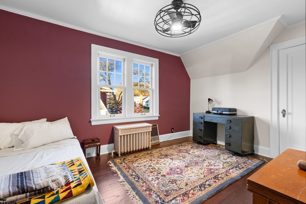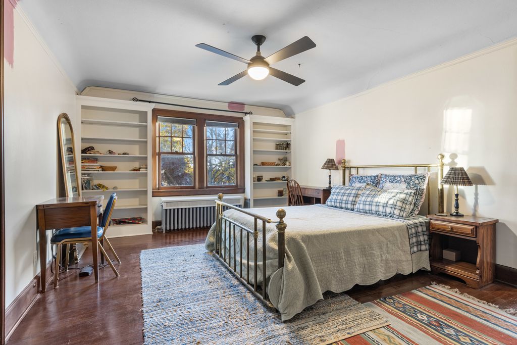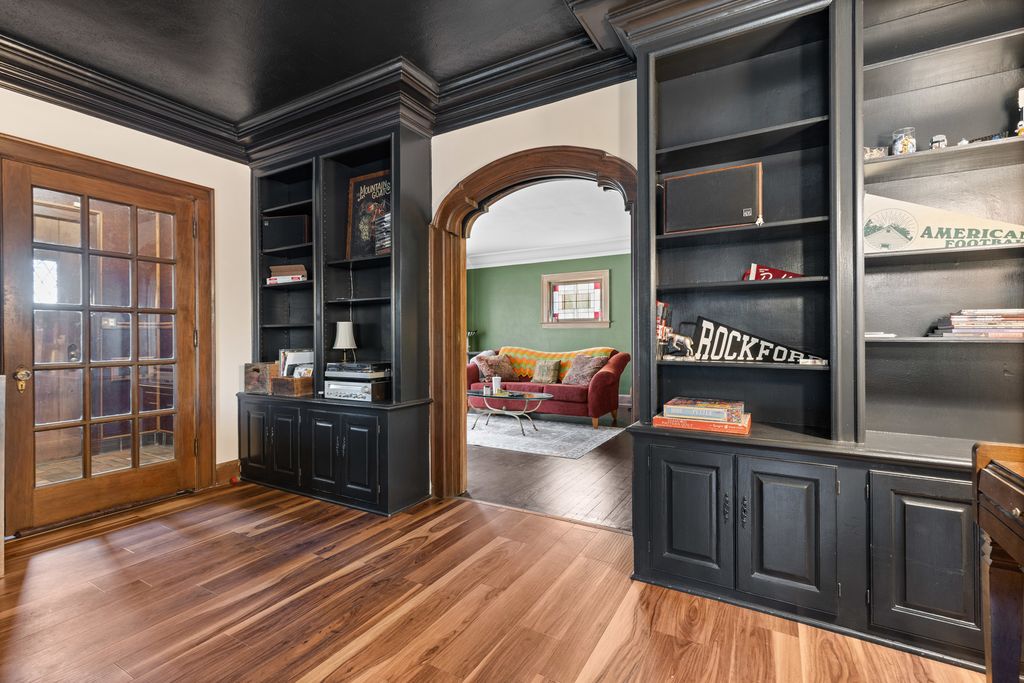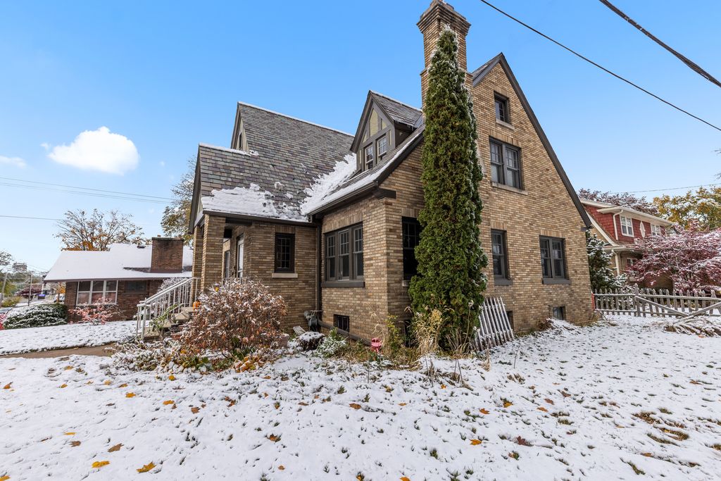 All-brick Tudor home with a timeless slate roof, centrally located just minutes from downtown Rockford, near two major hospitals and I-90. This charming home features 3 bedrooms, 1.5 bathrooms, and an attached 2-car garage. Gorgeous woodwork, arched doorways, and built-ins are found throughout. The main floor offers a spacious living room with a gas fireplace and built-ins, a formal dining room with hardwood flooring, a family room with hardwood floors and built-in shelving, a half bathroom, and a kitchen with a large walk-in pantry. A beautiful banister and staircase lead upstairs to three spacious bedrooms with hardwood flooring and a full bathroom showcasing original vintage pink-and-black tile. The primary bedroom includes two walk-in closets and a cedar closet for added storage. Enjoy the brick sunroom with ceramic flooring and the durability of the stunning slate roof. The home also includes a full basement with exterior access, and the attached 2-car garage features a newer flat roof.