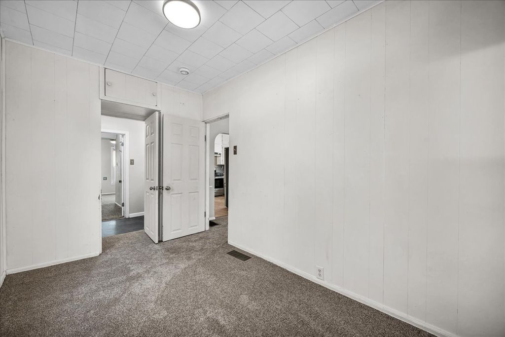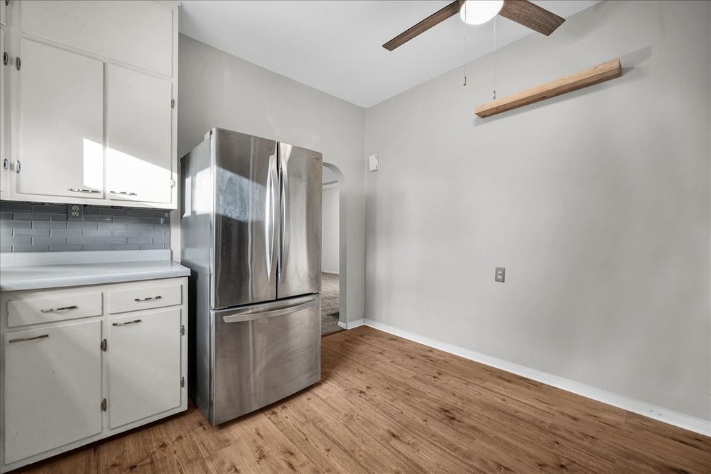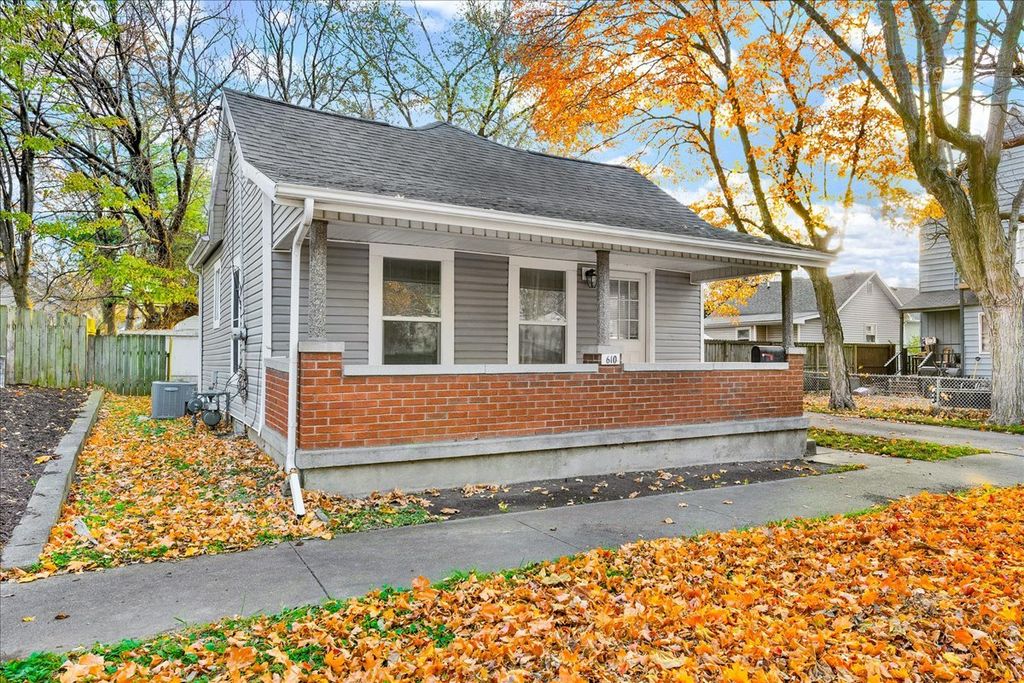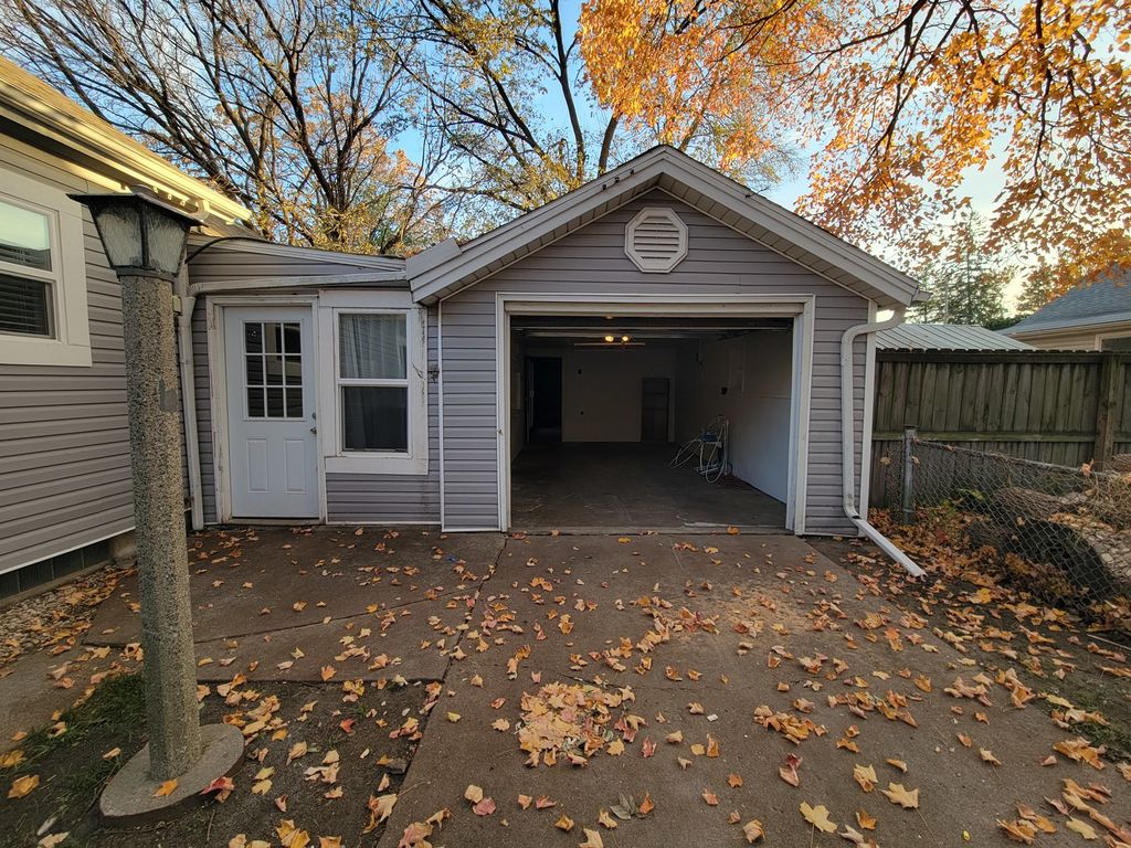 Well Maintained 2 bedroom/1 bath home in Bloomington. Nice location near Illinois Wesleyan University. New flooring in the living room, kitchen and bedrooms in 2025. Kitchen features stainless steel appliances, plenty of cabinets space and tile backsplash. Full bath has a tiled shower. Primary bedroom with nice built-ins. Vinyl windows throughout. Breezeway is attached to the garage and there is a bar/game room behind the garage great for hanging out and entertaining. Fenced in backyard with covered patio. Charming covered front porch- the front porch concrete pillars and driveway light have all been relocated to this home many years ago from Miller Park. The pillars at one point were light post that would light up the park. Maintenance free vinyl siding, high efficiency furnace and water heater new in 2018, roof replaced (total tear off) in 2015.