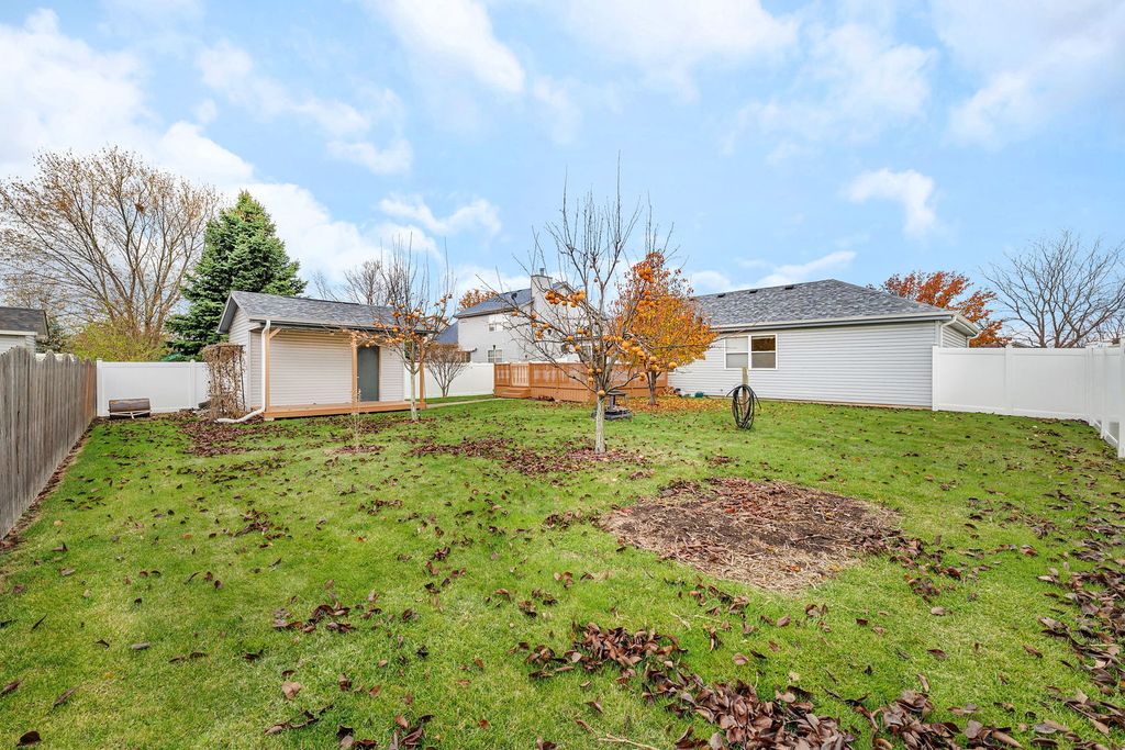 This spacious 3-bedroom, 3-bath ranch w/neutral decor provides the perfect palette for you to create your own dream home. Step inside to find a sun-bathed Living Room featuring a cathedral ceiling with fanlight & carpeting. The adjacent Dining Area and Kitchen reveal easy care wood laminate flooring. The Kitchen has upgraded white appliances including gas range & French door refrigerator with bottom freezer and exterior water/ice dispenser. The double stainless sink with window above boasts an extendable high arc faucet. Sliding glass doors lead from the Dining area to a huge deck and yard surrounded by a brand new maintenance free vinyl fence. There are two fruit trees in the back yard plus an oversized shed with covered porch....future he/she shed anyone? Carpet flows throughout the rest of the home with the exception of one bedroom that has wood laminate flooring. All Bedrooms have ceiling fanlights. The unfinished basement, already equipped with a finished Bath w/shower, provides an excellent opportunity to expand your living space or create a fabulous Rec Room or Personal Fitness Area. Attached 2-car garage. Home is being sold As-Is. View it! Buy it! Make it your Own!
