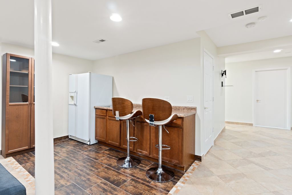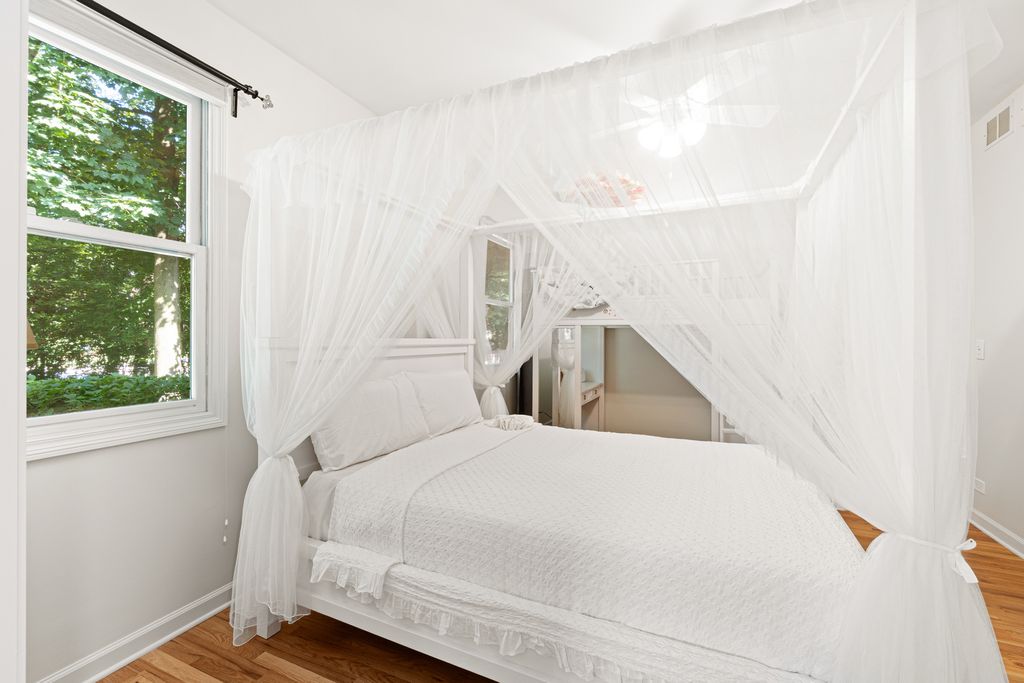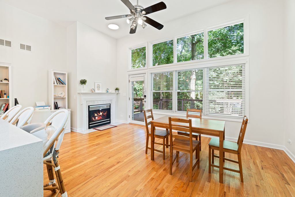 Discover a modern ranch in the desirable Glenview neighborhood, bordering Northbrook and Northfield, and conveniently located near schools, hospitals (Glenbrook and Northwestern), the Metro, and I-294. This residence, recently renovated in 2025, offers a perfectly sized layout all on one floor, promoting a conscious low-maintenance lifestyle while ensuring families stay connected in the cozy, close-knit spaces of the home. Nestled on a corner lot lined with mature trees, this home greets you with an open, airy ambiance defined by high ceilings, beautiful hardwood flooring, and a pristine white interior freshly painted throughout. The well-appointed kitchen is a true delight, featuring newly painted cabinetry, sleek quartz countertops, and a full suite of the latest Samsung smart appliances. The heart of the home flows seamlessly into a comfortable family room, anchored by an elegant gas fireplace and offering direct access to your private back deck-an ideal spot for quiet moments or lively gatherings, along with the option to explore the community woods in the backyard. Retreat to the primary suite, complete with a spacious walk-in closet and a newly renovated en-suite bath (2025), featuring a double vanity and spa-inspired fixtures. Two additional bedrooms and two renovated full baths provide ample space and comfort for family and guests alike. Smart Schlage keyless entry on all main doors adds convenience and security. Downstairs, the versatile, fully finished basement offers endless possibilities, including a spacious recreation room with a wet bar, a laundry room, a dedicated home theatre area, a sizable optional fourth bedroom, a full bathroom, a practical cedar closet, and abundant storage. Enjoy effortless living as HOA assessments cover essential services such as weekly lawn care, overnight snow removal, sprinkler maintenance, and backyard wood maintenance. This home has been thoughtfully updated for lasting appeal and efficiency, with a new roof (2020), a new chimney (2025), leaf-filtered gutters (2024), upgraded windows (2025), and bathrooms meticulously renovated in 2025 with premium fixtures. Glenview is renowned for its top-tier schools (Districts 34 & 225) and abundant parkland. With exceptional connectivity and easy access to the I-294 expressway, this home is just 15 minutes from O'Hare International Airport, making it a perfect choice for both convenience and comfort."
