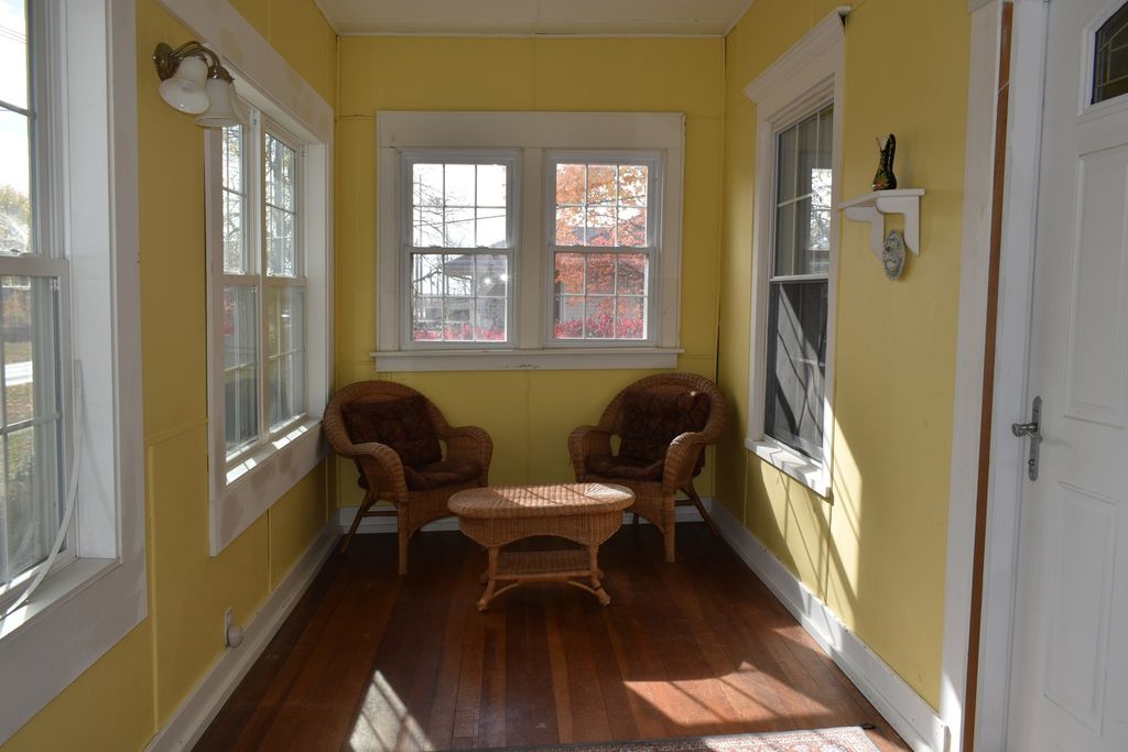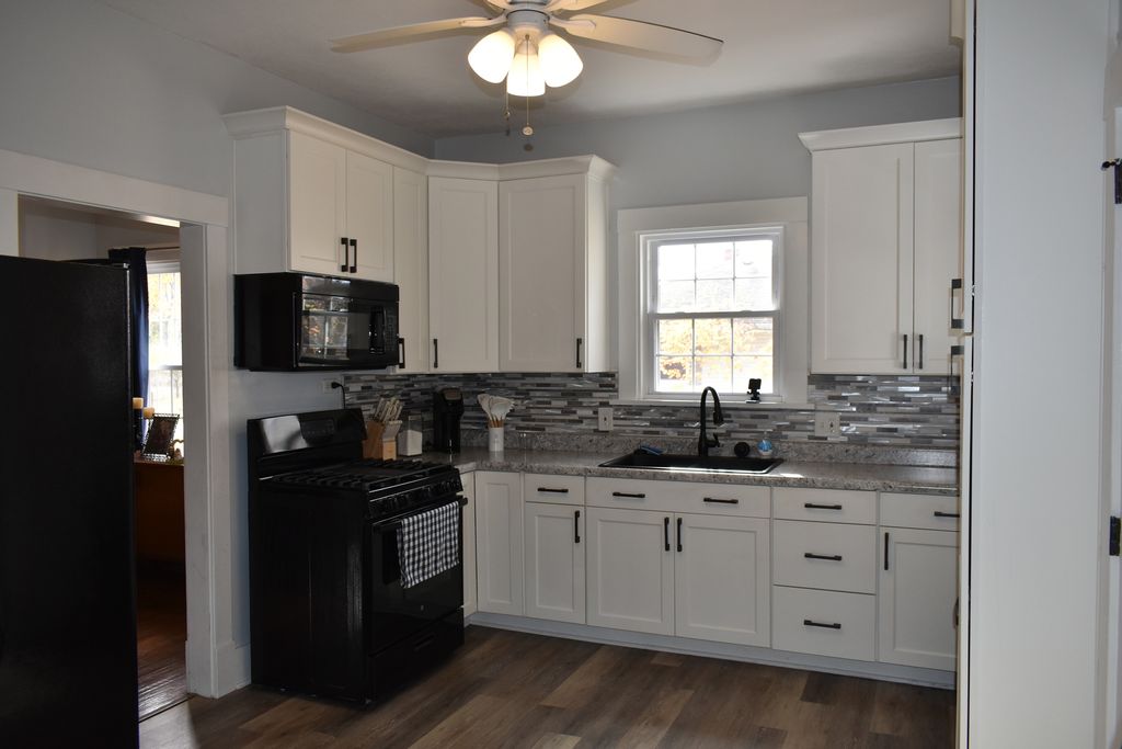 A great home with lots to offer at an affordable price! Enclosed front porch, open living & dining rooms, new kitchen in 2017 w/quality cabinets & tile backsplash has unique "butler's pantry" & large storage room off it, brand new basement bathroom just finished, oak floors throughout main level, hot water heat plus central air! Insulated 1 1/2 car garage plus large storage shed.