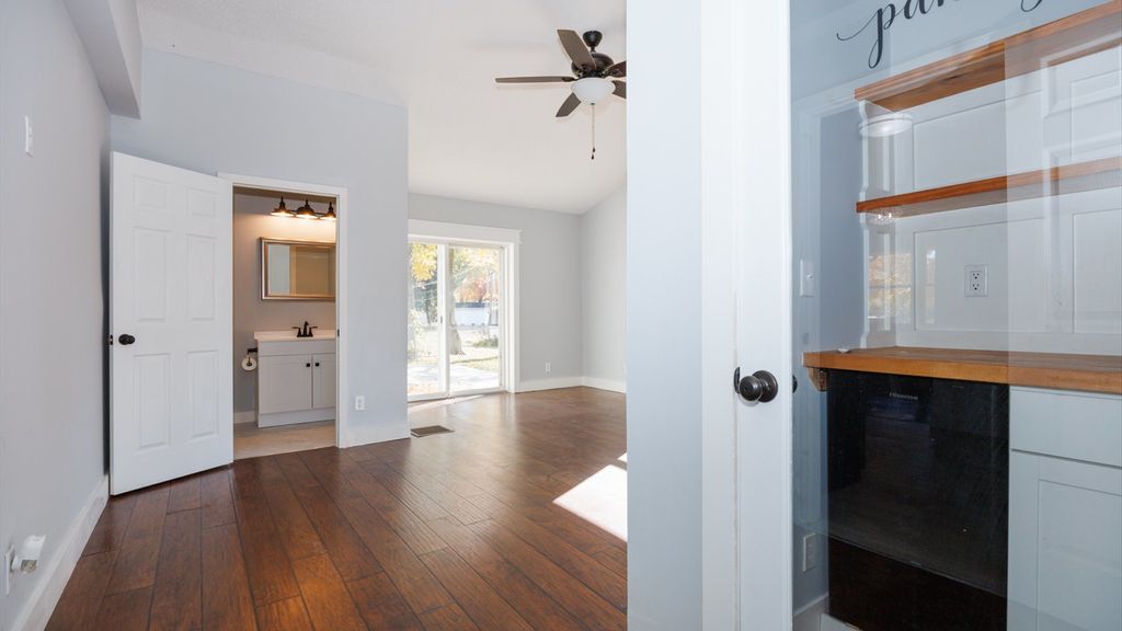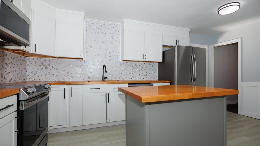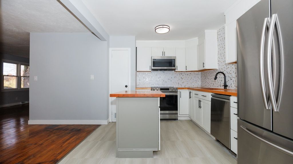 Welcome to this inviting ranch home offering 3 bedrooms and a large additional room that could be used as a 4th bedroom or family room, 1.5 baths, perfectly set on a spacious fenced yard with a deck, fire pit, and storage shed ideal for outdoor enjoyment. Inside you'll love the hardwood floors in the bedrooms and the open airy kitchen featuring beautiful butcher block counter tops. Family room with vaulted ceiling, large walk in pantry with bar and mini fridge, and additional closet with shelves built in. Enjoy cozy evenings in the living room with hardwood floors, built in electric fireplace and gorgeous lake views right out the front window. Major updates include newer HVAC(2025), windows and electrical giving you peace of mind for years to come. A convenient 1 car attached garage completes the package.A great blend of comfort, character, and modern upgrades.