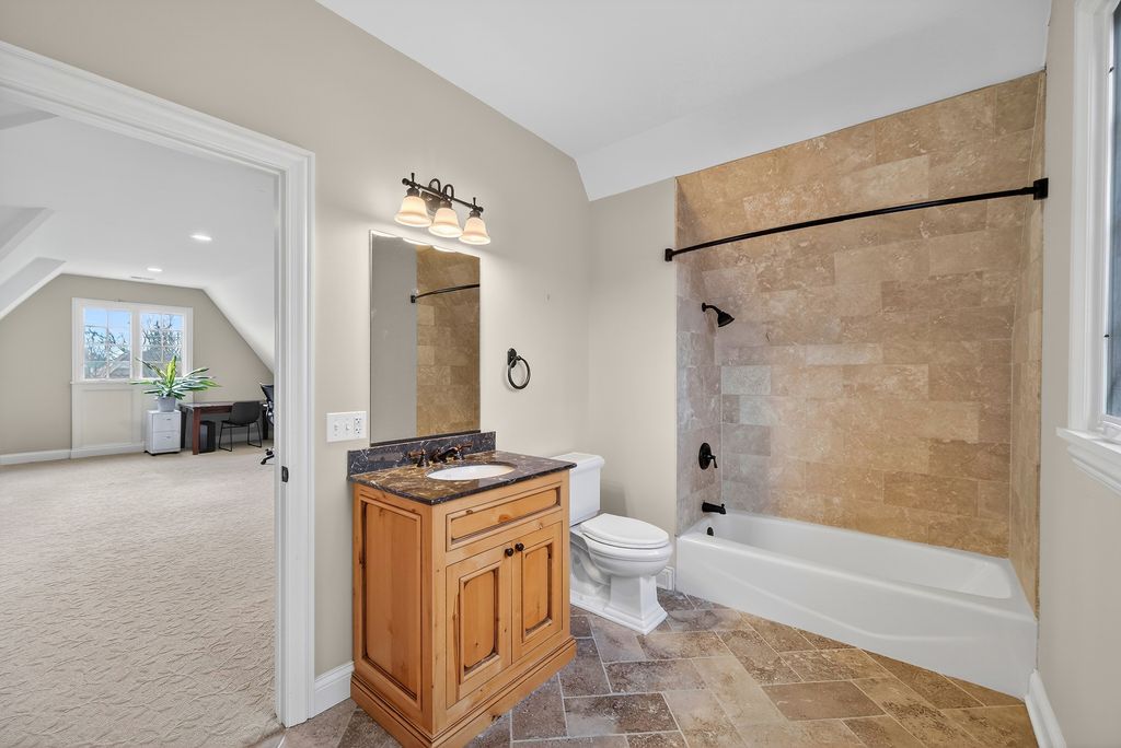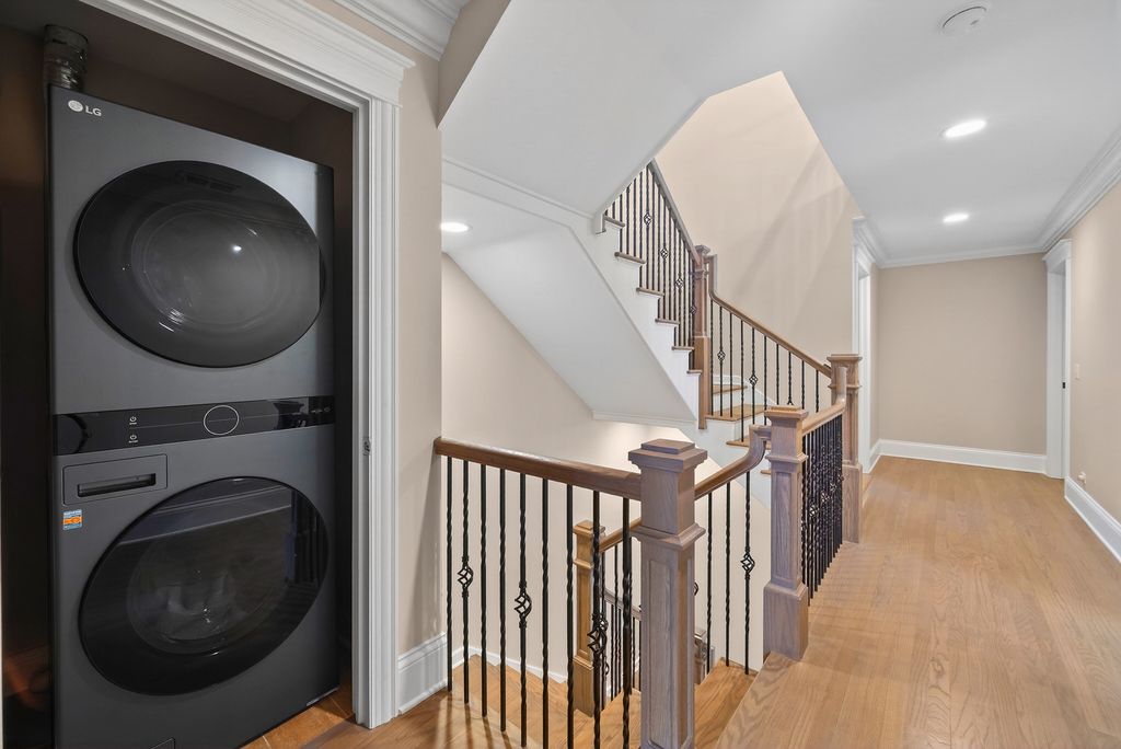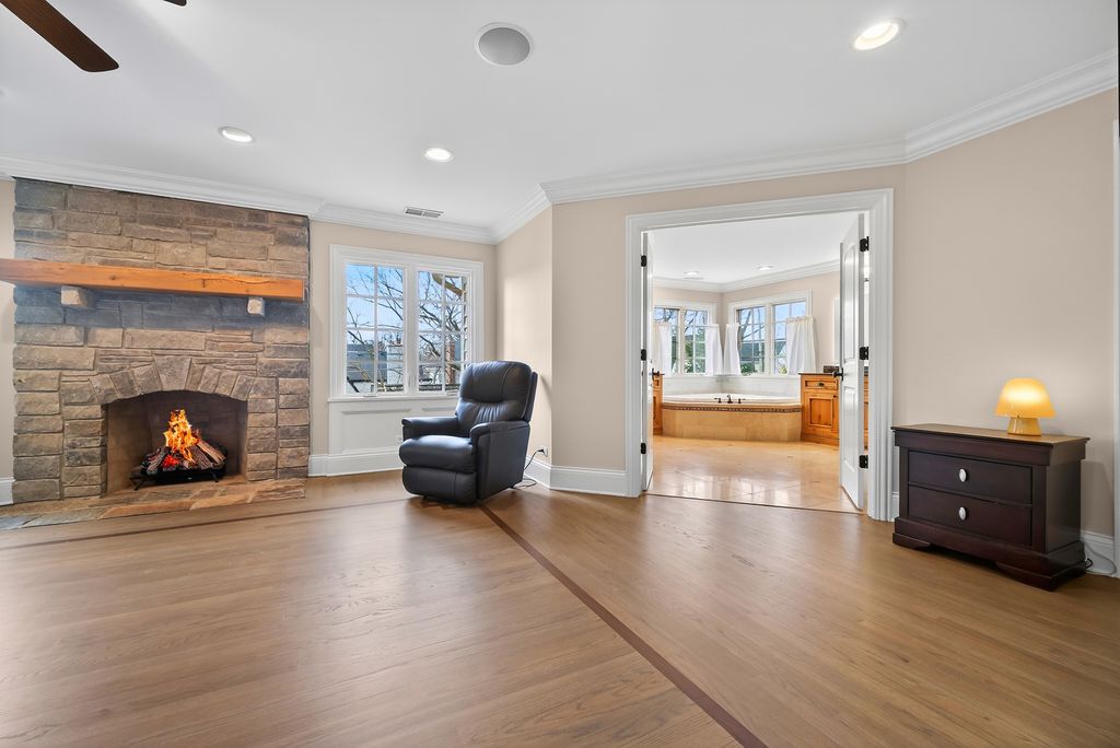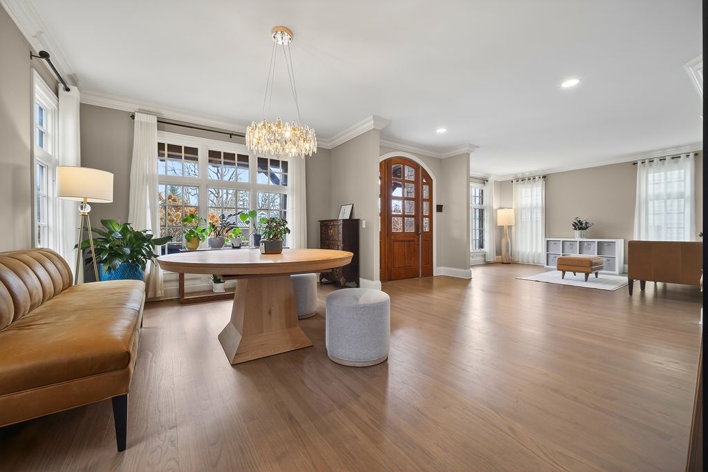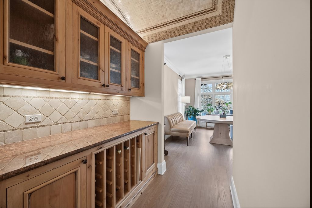 Perched at the top of the hill on highly sought-after Julian Street, this stunning custom residence offers timeless architecture, exceptional craftsmanship, and an unbeatable walk-to-downtown Naperville location. A welcoming covered front porch and impressive curb appeal introduce this stately home, thoughtfully designed for elegant entertaining and comfortable everyday living. The interior is flooded with natural light and showcases recently refinished hardwood floors throughout in a sophisticated light stain, complemented by updated lighting and refined finishes. The main level features a gracious living room and formal dining room, ideal for gatherings, along with an updated powder room. At the heart of the home is the chef's kitchen, impeccably appointed with custom Knotty Alder cabinetry, a paneled Sub-Zero refrigerator, two Sub-Zero refrigerator drawers, Wolf range with pot filler, paneled Bosch dishwasher, built-in pantry, and expansive granite countertops. A dedicated bar area with a striking barreled ceiling and wine storage flows seamlessly into the family room, where a beautiful stone fireplace anchors the space and walls of windows bathe the home in natural light. A private first-floor office features Knotty Alder wood trim, built-in desk, and custom cabinetry-an ideal work-from-home retreat. Upstairs, the primary suite enjoys its own private wing, offering a serene retreat with a spacious walk-in closet and a luxurious bath featuring dual vanities and refined finishes. Two additional bedrooms share a well-appointed shared bath, while a fourth bedroom offers the privacy of its own en suite. The convenience of a second-floor laundry area completes this level. The third floor provides exceptional flexibility, featuring a private fifth bedroom with a full bath and an expansive open space-perfect for a game room, additional family room, media lounge, or creative retreat. The deep-pour finished basement impresses with tall ceilings and outstanding versatility. Designed for entertaining and function, it includes a full bar with Knotty Alder cabinetry, granite counters, JennAir full-size refrigerator, Bosch dishwasher, and microwave. A striking stone fireplace with gas insert creates a warm gathering space, complemented by an open staircase that enhances the home's architectural flow. This level also features a fully updated full bath, a spacious second laundry room, extensive storage, dual furnaces, and two water heaters. Outdoor living completes the experience, offering inviting spaces to relax or entertain, surrounded by mature landscaping and an outdoor fireplace. Located just steps from Highlands Elementary, North Central College, downtown shops, restaurants, and the Riverwalk, this extraordinary home blends luxury, layout, and location-a rare opportunity to experience Naperville living at its finest.