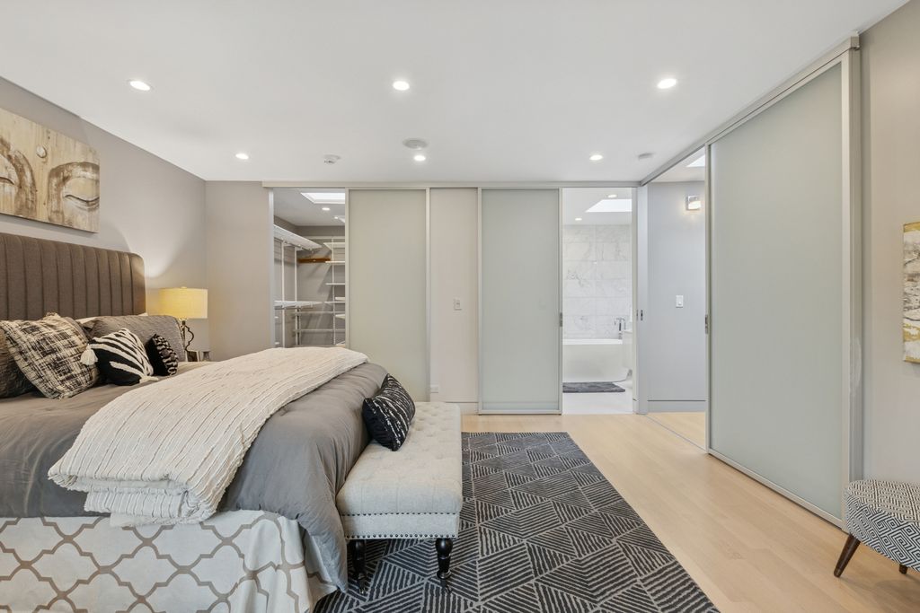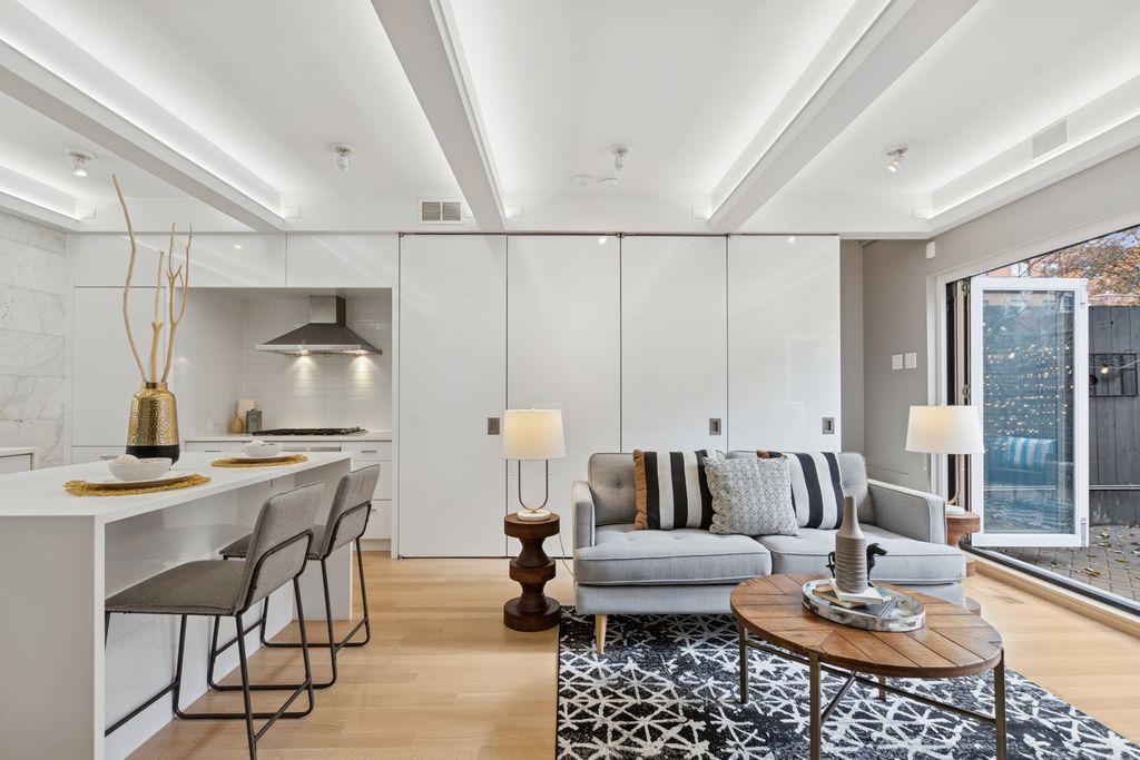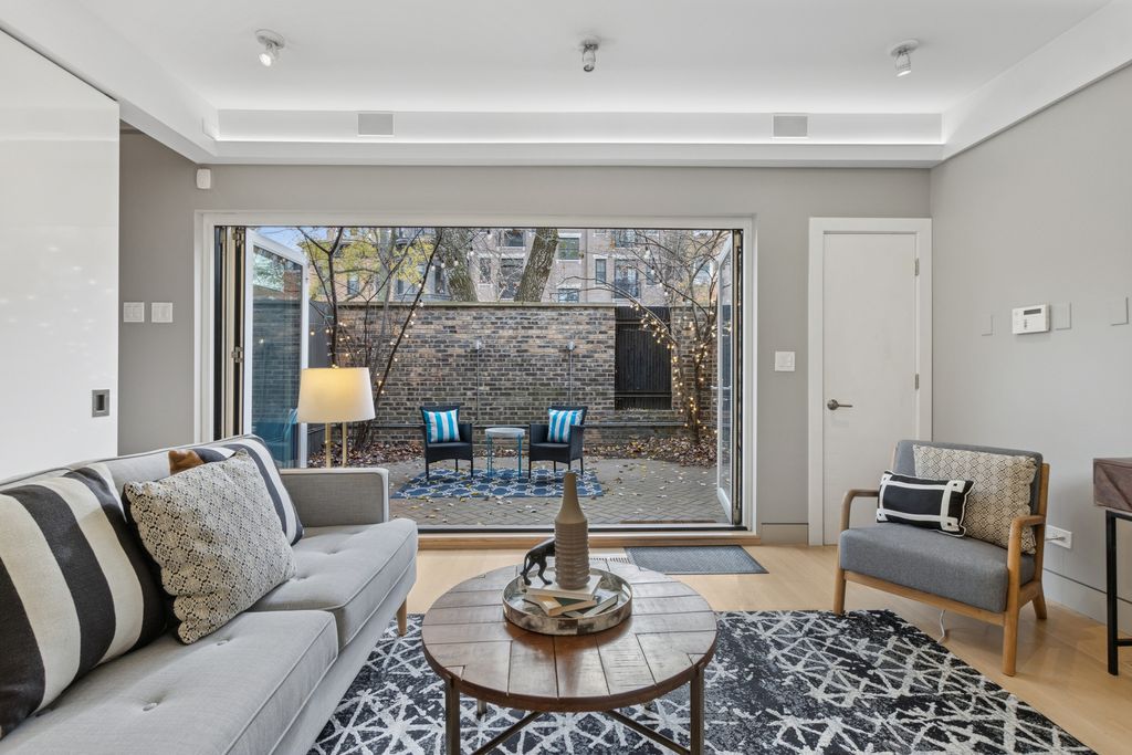 Nestled in the heart of East Lakeview, this pristine 3-bedroom, 2-bath townhome is a rare urban oasis offering exceptional indoor-outdoor living with a dramatic floor-to-ceiling glass wall that fully opens to an oversized private patio-perfect for entertaining, relaxing, or giving your dog his own private outdoor space. Talk about Dog friendly! The open-concept main level centers around a striking chef's kitchen with crisp white cabinetry, Sub-Zero refrigeration, Bosch appliances, and a statement waterfall island. Upstairs, the primary suite feels like a retreat with two closets (including an enormous walk-in) and a spa-inspired bath with soaking tub, glass-enclosed shower, and dual vanity. All bedrooms feature Juliet balconies, and the flexible third bedroom with glass-paneled walls adapts seamlessly for guests, work, or lounging and features a built in office nook. Additional features include in-unit laundry, one exterior parking space, a newer roof, fee simple ownership with no HOA assessments, and potential Airbnb flexibility. Steps from the lakefront, Top schools Alcott Elementary and Lincoln Park High School, Belmont Harbor, Lincoln Park's trails, Southport cafes and boutiques, and the Brown and Purple Lines, this home delivers unmatched style, privacy, and convenience in one of Chicago's most vibrant communities.
