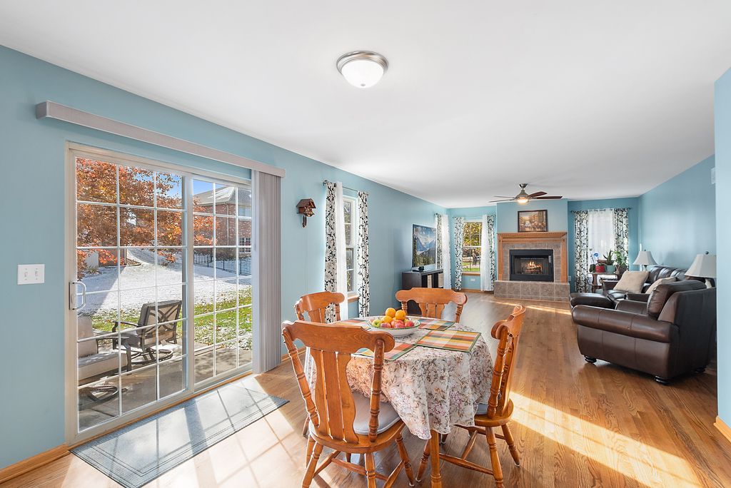 Beautifully cared for and maintained Two-Story Home in Sought-After Crystal Cove Subdivision! This home has been custom built with quality finishes by the original owners. This well designed home offers space, style, and comfort-all in a convenient location within walking distance to local schools, parks, and the Plank Trail Bike Path. Notable updates include a new roof and gutters in 2025, a high-efficiency furnace and humidifier installed in 2022, and a new air conditioner added in 2023. From the moment you walk in, you'll notice the tastefully painted interior and refinished hardwood floors that flow seamlessly throughout the main level. The open living room and formal dining room create a warm, inviting atmosphere perfect for everyday living and entertaining. The eat-in kitchen features solid maple cabinets, a pantry, breakfast bar, and stainless steel appliances, with a sliding door that opens to the concrete patio-perfect for outdoor dining or gatherings. The cozy family room includes a gas and wood-burning fireplace for added charm. A mudroom with built-in utility sink connects to the spacious three-car garage complete with an attached workbench. The convenient powder room completes the main floor. Upstairs, a large sitting area offers flexible space that can serve as a second family room, home office, play room, or additional bedroom. The primary suite features a generous walk-in closet and a private bathroom with double sinks, a separate shower, and a relaxing whirlpool tub. Two additional bedrooms, both with sprawling walk-in closets. There is also a full pass-through bathroom with double sinks. The laundry room is conveniently located on the second floor and comes equipped with a Samsung washer and dryer. The full finished basement, completed in 2009, provides even more living space with possible related living. It includes a second eat-in kitchen, a family room, a bedroom with a walk-in closet, a full bathroom with a shower, and an exercise room-making it an ideal setup for guests, extended family, or entertaining. The exterior is equally impressive, featuring a concrete patio, fire pit, and mature trees that offer shade and privacy-creating the perfect space for outdoor enjoyment. Meticulously maintained and thoughtfully updated, this move-in-ready home combines comfort, quality, and convenience in one of the area's most desirable neighborhoods. Close to schools, trails, shopping, and restaurants-this home truly has it all!