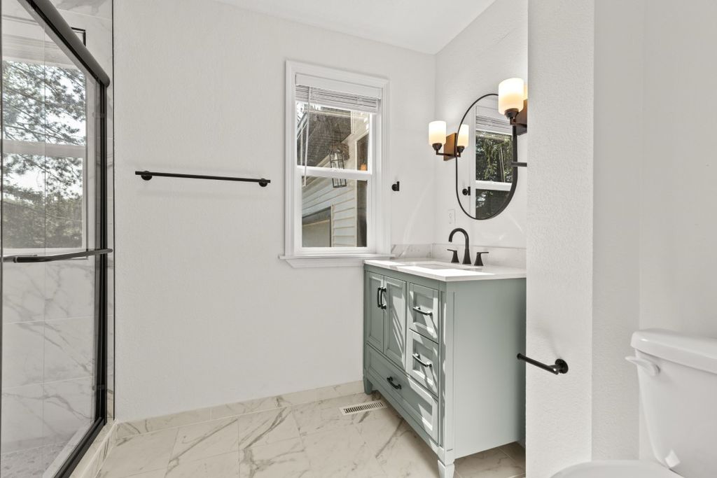 Charming move-in ready and completely updated 3 bed, 2 bath farmhouse style home. Zoned AG, Welcoming open front porch. Fresh paint. New flooring throughout. Eat-in kitchen with brand new SS appliances, plenty of cabinets and new custom patio sliders to new spacious deck. Main floor master with full bath. New two panel solid doors. Upper level has two spacious bedrooms that share a full bathroom. New windows, roof, siding and septic system. Newer AC/furnace and water heater. Attached 2 car garage. Close to shopping, restaurants. Schedule your private showing today.
