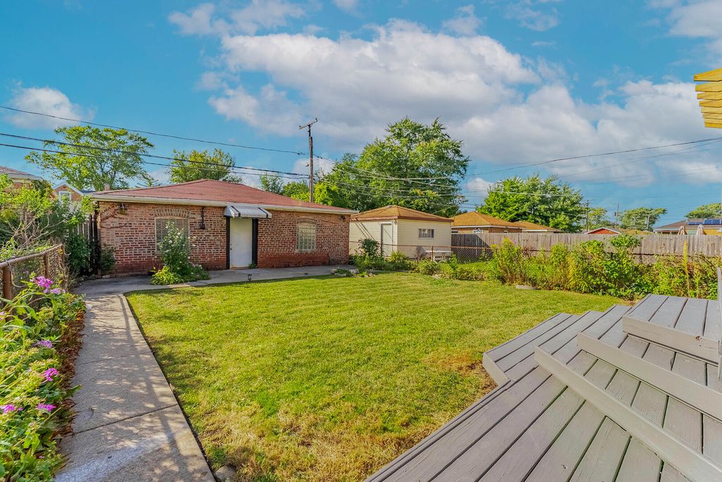 ***HUGH PRICE REDUCTION**Step into this delightful single-family residence and prepare to be impressed. Featuring 3 generously sized bedrooms and 1.5 baths across two levels, this home offers the ideal blend of comfort, style, and everyday functionality. The finished basement is the perfect extension of your living space-host friends at the dry bar, enjoy cozy movie nights in your private home theater, or set up the ultimate playroom or hobby area. Outdoors, a spacious deck and expansive yard create the perfect setting for barbecues, gatherings, or simply relaxing in the fresh air. Topping it off, the extra-wide 2.5-car brick garage provides ample parking and storage, along with an additional patio for even more outdoor enjoyment.