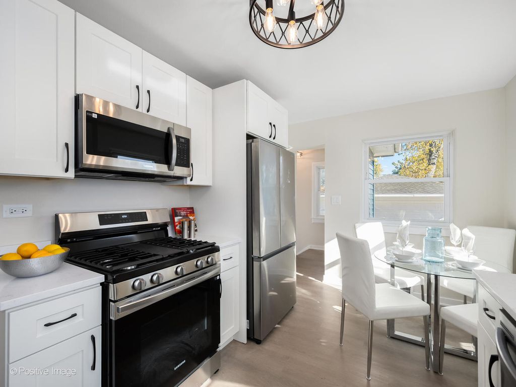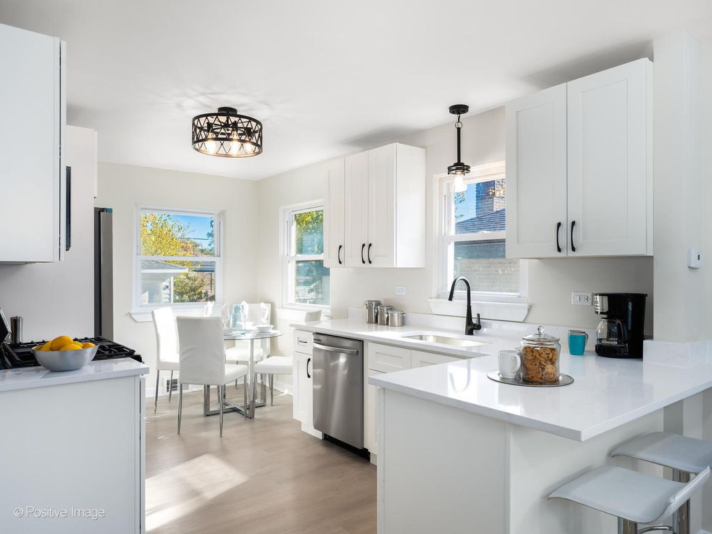 Fully renovated brick ranch - turnkey perfection inside and out! This beautifully updated 5-bedroom, 2-bath home offers the perfect blend of modern comfort and timeless charm. Step inside to a bright, open-concept living space featuring recessed lighting, large picture windows, and updated finishes throughout. Features include a modern kitchen with white shaker-style cabinetry, quartz countertops, all new stainless steel appliances, breakfast bar eating, and a cozy eat-in nook overlooking the backyard, perfect for casual mornings. The main level includes 3 spacious bedrooms and a fully updated bath with new tile and sleek fixtures. Downstairs, the fully finished lower level offers exceptional additional living space - a large family room with space for an office, 2 bedrooms, and a stylish full bath with designer tile and matte-black finishes. Outside, enjoy a low-maintenance yard and expansive patio area, ideal for outdoor dining and entertaining. Located on a quiet residential street close to parks, schools, shopping, and major expressways, this home delivers incredible value, convenience, and style - a rare find! Agent owned/interest.