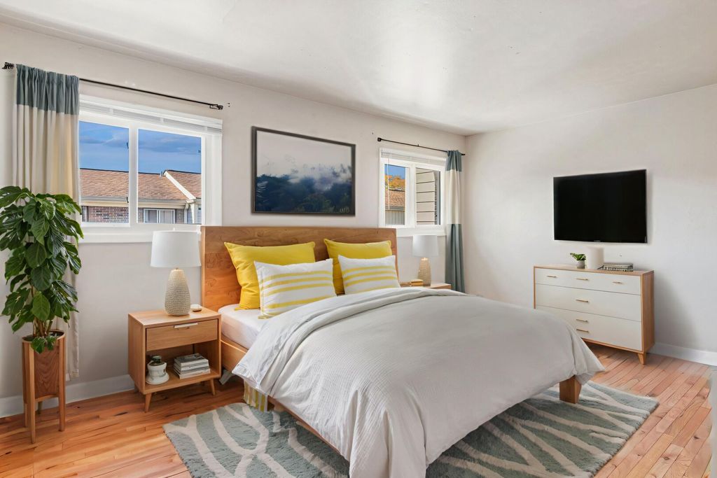 Two-story townhome in popular Georgetown West of Wood Dale community. Offering 2 bed/1.5 baths + partially finished basement with additional bedroom. Tons of natural light, rich hardwood floors on main level and 2nd floor. Eat-in kitchen and spacious living room/dining room combination. Powder room on main level and full bath on 2nd level with two spacious bedrooms. Full basement is partially finished with laundry area and bedroom with egress window (2021). Private fenced patio/courtyard with deck. Two assigned parking space conveyed with the unit, #E15. Assessment: exterior maintenance, lawn care (front yard & common space), common insurance and scavenger. Additional amenities include exterior pool, clubhouse, party room and park/playground. Pets are allowed. Taxes reflect no exemptions. Ideal location for commuters - 1 mile to Wood Dale Metra Station, 1 mile to Itasca Metra Station, 2.1 miles to I-390 access and multiple routes to airport. Conveniently located near shopping, restaurants and downtown areas. Property being conveyed "as is". Rentals are allowed per the management company.