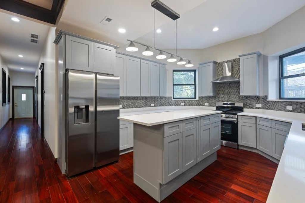 Expansive 3-Bed, 2-Bath Residence Modern Living in Bronzeville! Step into this beautifully renovated full-floor home featuring nearly 1,900 sq ft of well-designed space. The open concept layout includes a bright living room with bay windows, a dedicated dining area, and a stunning kitchen with a large island, quartz countertops, shaker cabinetry, and stainless-steel appliances. The primary suite offers a private bath and walk-in closet, while two additional bedrooms provide generous space for family, guests, or an office. Enjoy details like recessed lighting, hardwood floors throughout, stylish bathrooms with designer tile, in-unit laundry, and rear porch access. Gated parking included! Located in the heart of the Bronzeville/Hyde Park corridor-minutes from shopping, dining, parks, and the lakefront. Modern comfort, historic charm, and unbeatable space-all at an incredible value!