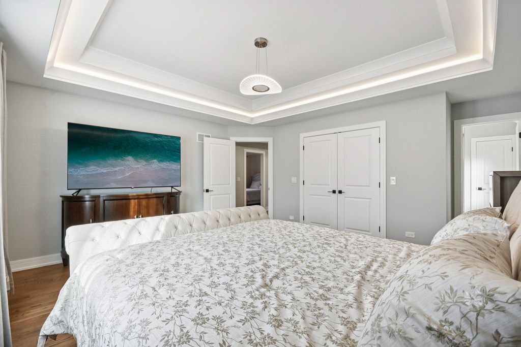 Modern Luxury Meets Timeless Design in the Heart of Burbank Discover contemporary elegance and quality craftsmanship in this stunning 4-bedroom, 3-bath single-family home, built in 2022 and perfectly located in one of Burbank's most desirable neighborhoods. This all-brick and stone split-level residence with a sub-basement combines style, comfort, and functionality-offering the best of modern suburban living. Step inside and experience an inviting open-concept layout highlighted by vaulted and tray ceilings, gleaming hardwood floors, and abundant natural light. The formal living and dining areas feature elegant rope lighting, creating a warm and sophisticated ambiance-ideal for entertaining. The chef's dream kitchen impresses with 8-foot custom cabinetry, quartz countertops, stainless steel appliances, a spacious island, and a skylight that fills the space with light. Ceiling speakers add a touch of modern convenience, making it the perfect spot for family gatherings and casual dining alike. The primary suite offers a private retreat, complete with a walk-in closet and a spa-inspired bath featuring a walk-in shower and designer finishes. Two fireplaces add comfort and charm throughout the home. The lower level provides exceptional versatility with a generous family room, guest bedroom, and full bath-ideal for extended family or guests. A laundry area and access to the sub-basement provide ample storage and potential for a workout room, playroom, or home office. Additional highlights include a 2-car attached garage with epoxy floors and overhead storage, and a fully fenced backyard perfect for summer gatherings and BBQs. Located close to restaurants, shopping, parks, and transportation, this home delivers both convenience and luxury-ready for you to move in and make it your own.