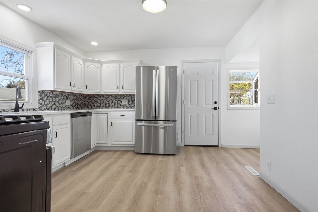 With a spacious fenced yard, 1.5 car garage and covered front wrap around porch, this adorable 4 bedroom bungalow is move in ready and offers tons of potential to the new owner. Main floor living and dining rooms have updated flooring and paint. This kitchen is like new, including white cabinets, back splash, new appliances and more. 1st floor spacious bath with double vanity. Main floor laundry in 4th bedroom. The 2nd floor, updated in 2025, has 2 generously sized bedrooms with plenty of closet space. New water heater 2025. Many new windows.
