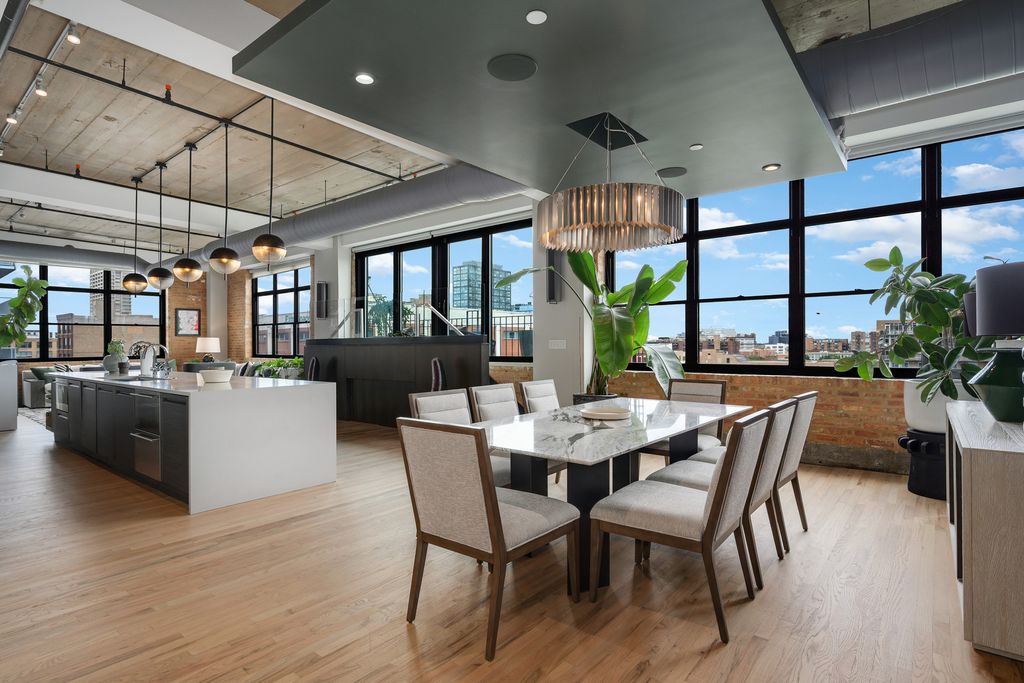 Introducing a breathtaking West Loop Penthouse overlooking Mary Bartelme Park: a two-story loft offering the ultimate blend of luxury, design, and functionality. With over 3,400 sq ft of beautifully renovated living space and more than 1,000 sq ft of private outdoor retreats, this Southwest Corner Penthouse will wow you with the park and city views. The home features the ultimate West Loop loft living, and showcases soaring ceilings, abundant natural light, and curated details at every turn, from Florense cabinetry and custom millwork to Control4 smart home technology. The show-stopping Chef's kitchen is both sleek and functional, featuring Sub-Zero, Asko and Wolf appliances with a double oven and warming drawer. Additional luxuries include a Grohe Blue faucet for instant carbonated water and filtered water system, plus beverage drawers so you never run out of storage. The massive island with seating and storage is perfect for entertaining and enjoying, and the modern pendants highlight the craftsmanship of the home. Perfect for entertaining, the kitchen flows seamlessly into expansive living and dining areas that open to a balcony overlooking Mary Bartelme Park. The oversized primary suite features wonderful closet space, a dressing area, and an ensuite bath that feels like hotel living. You will enjoy a steam shower, a separate soaking tub, and dual vanities. A guest bedroom and second bath complete the main floor, while a polished terrazzo staircase with custom steel rails leads to the upper level, where a flexible media room/den, office/guest room, and access to a remarkable private roof deck await. With panoramic South East, and West views, the outdoor roof deck features city skyline as well as park views. The rooftop is a true retreat, complete with a custom outdoor kitchen featuring steel cabinetry and a concrete countertop. Ideally located in the heart of the West Loop, you'll enjoy world-class dining, boutique fitness studios, and great shopping just outside your door. This is an incredible opportunity to own a piece of the West Loop.