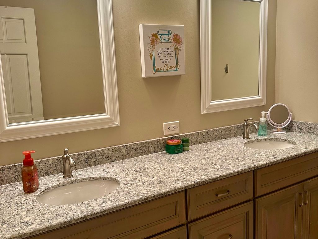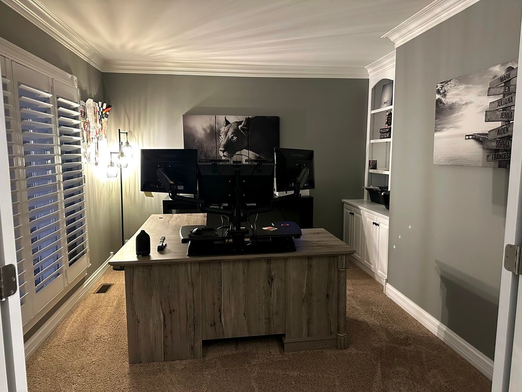Spectacular home in the sought after golf oasis of Klein Creek subdivision! As you approach, you'll notice the amazing curb appeal followed by the lush landscaping and beautiful front porch. Once you enter the home you are greeted with a grand 2-story foyer, oversized white millwork, custom wainscoting and beautiful hardwood flooring throughout. The first floor features an office/den with glass French doors, oversized kitchen with white 42" cabinets, granite countertops and stainless-steel appliances (2022). The open floor plan leads to the two-story family room showcased by a floor to ceiling brick fireplace, custom built shelving, wall of windows and skylights. There is also a fabulous 3 seasons room that was recently built (2024). The upstairs is expansive with enormous bedrooms, walk in closets in almost every room and a giant remodeled bathroom with double sinks. The primary suite is perfect, featuring a large walk-in closet and a huge bathroom with double sinks, separate soaking tub and vaulted ceilings with skylight. The large basement is beautifully finished with an open floor plan, featuring a private room which can be used as a bedroom or used for extra storage. There is also a private office. Once you step back outside you will be amazed, the back yard concrete patio was just built along with a massive new brick and stone fireplace, lush landscaping, retaining wall and amazing nighttime lighting. Let's not forget about the new (2024) extended concrete driveway leading to the 2 1/2 car heated garage featuring epoxy floor an abundance of lighting and outlets everywhere, also wired for EV charging. Large items have also been replaced HVAC (2020) Roof (2019) Hot water tank (2023) Kitchen appliances (2022) Garbage disposal (2025) All concrete (2023/2024) 3 seasons room (2024) outdoor fireplace (2024) retaining wall (2024)