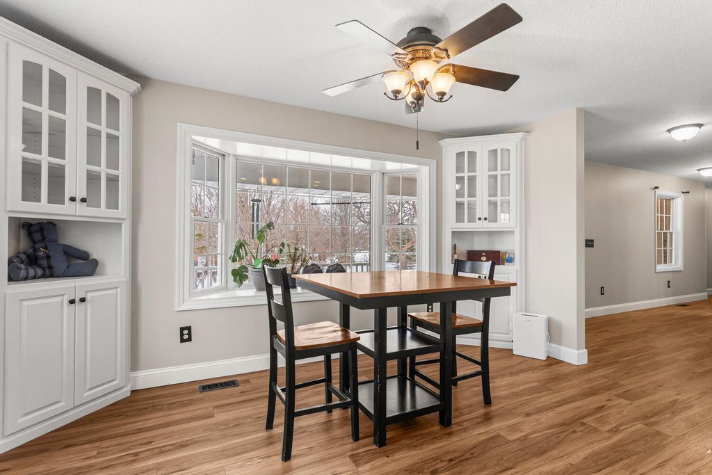 A rare opportunity to enjoy space, comfort, and location all in one! Located just minutes from Lake Decatur, shopping, dining, and less than 10 minutes away from I-72, this beautiful 5-acre property provides the perfect blend of convenience and privacy - all within Argenta-Oreana School District! With all new flooring (LVP) on the main level, fresh paint throughout (new trim and doors), and brand new tasteful updates, this home is absolutely move-in ready. Situated on the edge of town, the home is surrounded by private grounds and scenic views. It feels wonderfully private while still offering the comfort of a small neighborhood community. The kitchen is made for gathering and hosting, featuring a large center island, freshly repainted cabinetry, and a walk-in butler's pantry. Brand new refrigerator! Imagine enjoying your morning coffee in the sunroom, warmed and energized from the sun flowing through the windows. The main-floor primary suite includes a private bath (cabinets have also been freshly painted, new toilet, and new light fixtures), his and her closets, and an attached flex space. This would be great for an at home library, private office or even a nursery. Downstairs, the finished walkout lower level offers two additional bedrooms, two bathrooms, a spacious rec room, and a cozy family room - plenty of space for everyone to spread out. Outside, take a short walk to the outbuilding where you'll find a temperature-controlled workshop and tons of storage space. Use the temperature controlled space as an at home gym, hobby shop or another office space. Extra storage space for toys and activities. RV and boat parking also available! So many possibilities with this added space! Whether you're looking for room to grow, space to relax, or a place that fits just about any stage of life - this home is ready for it's new owners!