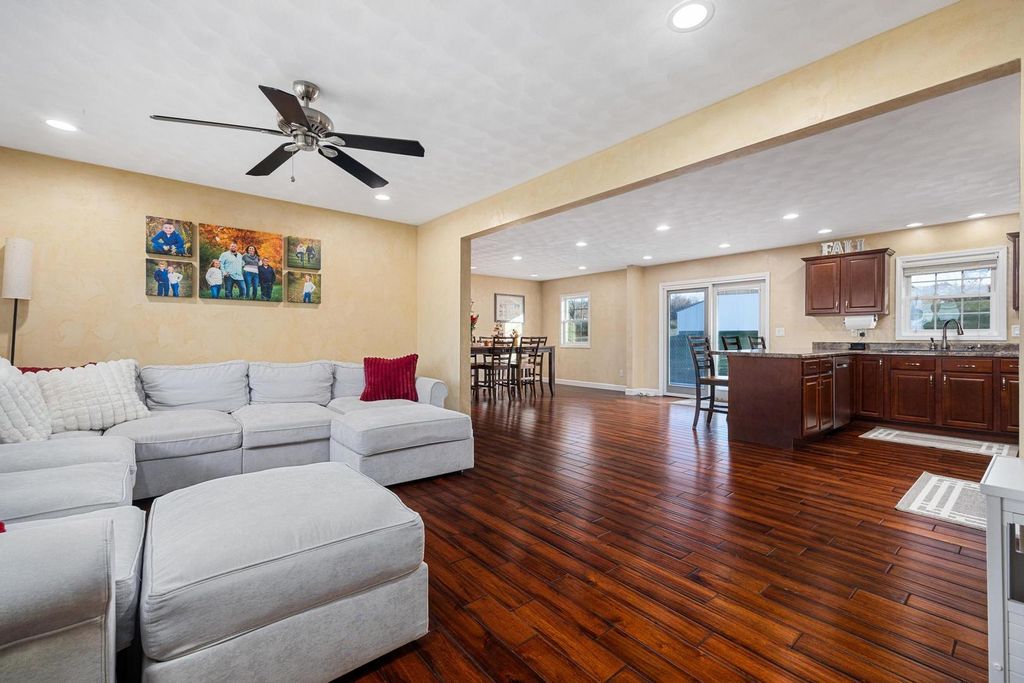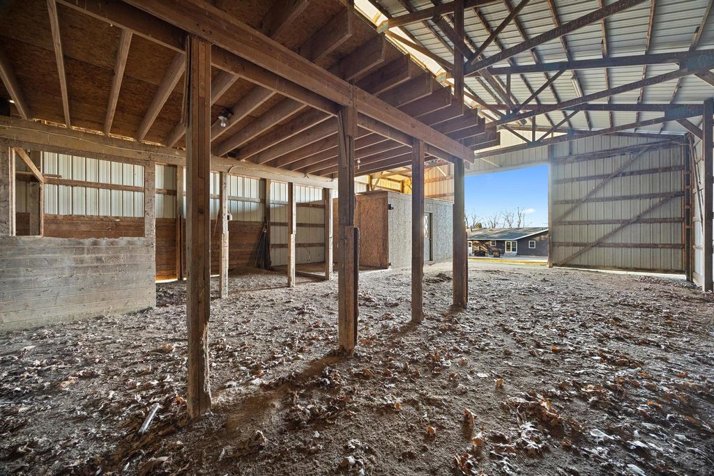 Hobby Farmers take a look! Absolutely breathtaking 4-bedroom, 2.5-bathroom raised ranch on 5 acres of land! Beautiful hardwood flooring is laid throughout the open-concept living room, kitchen, and dining room. There are plenty of entertainment spaces in this home! The laundry room is located on the main floor, making it convenient to take loads with you to the 4 main floor bedrooms. You'll fall in love with the oversized primary bedroom, walk-in closet with shelving/drawers, and private full bathroom. The primary bedroom has access out to the spacious back patio. The luxurious tiled primary bathroom features a large bathtub perfect for soaking, double sinks, and a HUGE walk-in shower that you'll never want to leave! The other 3 bedrooms all have great closet space and are carpeted. The main floor full bathroom features double sinks and closet storage. Turn the basement into your own dream basement with ample space, a wood-burning fireplace, and a utility storage room. The large, oversized 2-car garage is attached and can be accessed from the basement. It even has its own half bathroom and plenty of extra space for storage, a workspace, or whatever your heart desires! Spacious outbuilding in the back features horse stalls and side storage with garage doors. This is your DREAM HOME! Schedule your private tour today and make it your own.