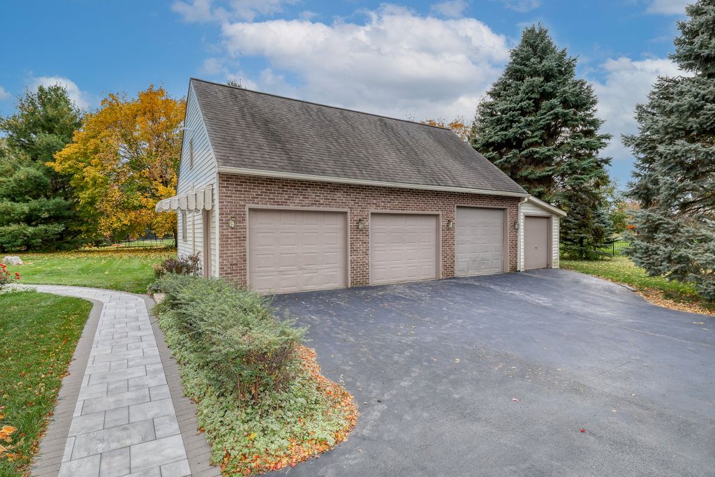 Beautiful 3-Bedroom Home with 1st floor primary suite, Finished Basement and 5 car garage on a picturesque 1.25 Acres Welcome to this beautifully maintained three-bedroom, two-and-a-half-bath home offering the perfect blend of style, function, and space both indoors and out. The main-floor primary suite provides convenient single-level living, while two additional bedrooms and a full bath with a tub/shower combo are located upstairs. A walk-in attic space offers excellent storage or potential for future expansion. At the heart of the home, the kitchen features granite countertops, a tile backsplash, 42" cabinetry, stainless steel appliances, and a butler's pantry. The family room includes fireplace and custom built-ins, creating a warm and functional gathering area. A main-level laundry room adds convenience, and the finished basement with an electric fireplace provides extra living space perfect for a recreation room, home office, or guest retreat. Step outside to enjoy the screened porch overlooking the picturesque 1.25-acre lot-ideal for relaxing or entertaining. Car lovers and hobbyists will appreciate the attached two-car garage plus an additional detached three-car heated and airconditioned garage with car lift and upstairs attic space offering plenty of storage and workspace. Sump pump 2023, A/C and Furnace 2021, Well pump 2022, Refrigertator 2023, Dishwasher, Stove and Microwave 2018, Water Heater 2011, unsure the age of roof but we know its older.