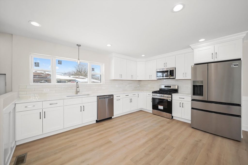 Full gut renovation completed with city approved plans and permits. This home truly feels like new construction, offering modern elegance & stylish finishes throughout but with solid & bold brick character that you will love. The peace of mind that comes with a complete top-to-bottom renovation is hard to find. This inviting 4-bedroom, 2.5-bath home with an oversized 2.5-car garage with 8' door and a fully finished basement, providing plenty of space to relax, entertain, or grow. The heart of the home is the beautiful open-concept kitchen and living area, designed for everyday living and effortless gatherings. Nearly everything is brand new-including plumbing, electrical, HVAC, roof, windows, trim, doors, flooring, and fixtures-so you can move in and enjoy without a to-do list. This home delivers the look and feel of new construction at a more approachable price point. Truly turnkey and ready to welcome you home-be sure to view the 3D tour and schedule your private showing today!