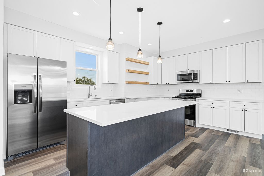 Beautifully renovated Victorian farmhouse situated on a spacious .46-acre lot, offering 5 bedrooms and 3.5 baths with timeless character and modern finishes throughout. The main level features an open-concept layout with a generous kitchen, living and dining areas, plus a main-floor bedroom and full bath ideal for related living, guest use, or home office needs. The second level includes four well-sized bedrooms, including a primary suite with walk-in closet and updated bath. A large unfinished third-floor attic provides excellent storage and future expansion potential. The basement offers additional flexible space with the opportunity to create recreation, fitness, hobby, or storage areas. The expansive yard includes a screened back porch and plenty of room for outdoor entertaining and play. Convenient location near parks, shopping, dining, transportation, and Schools.