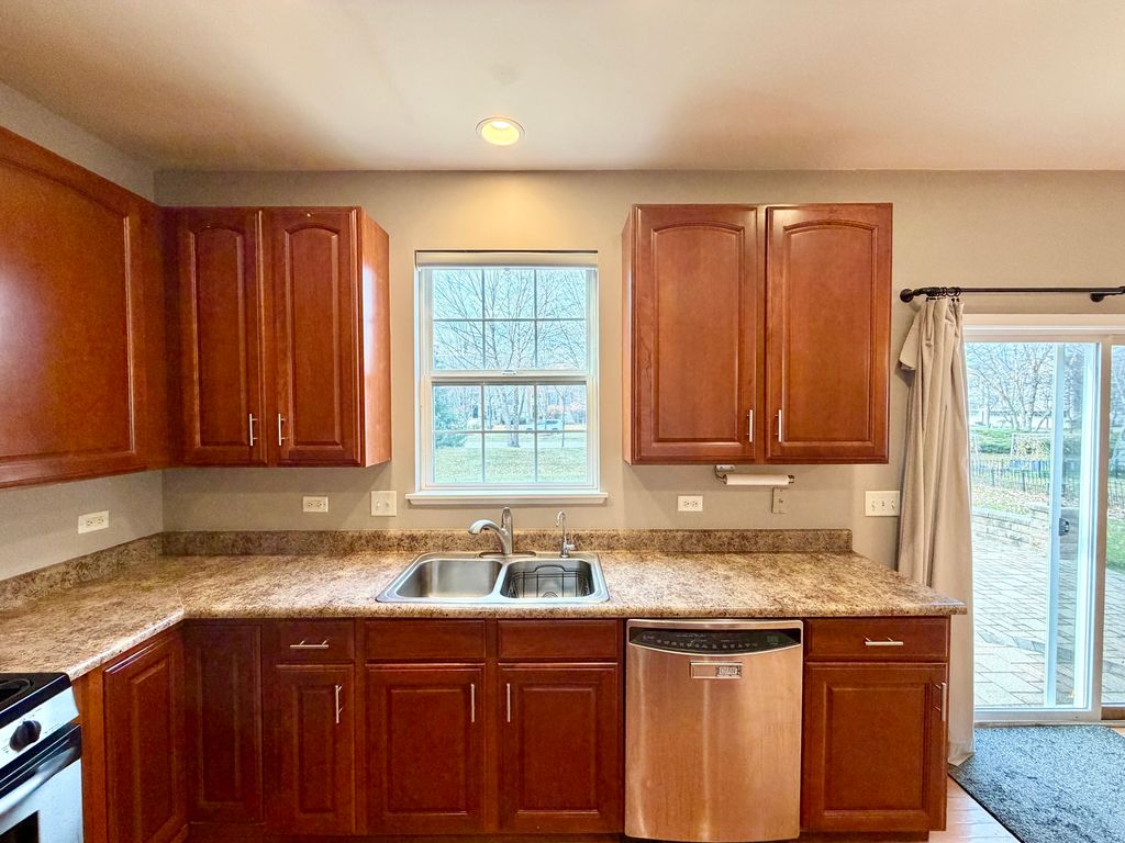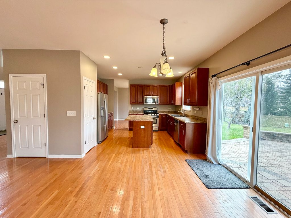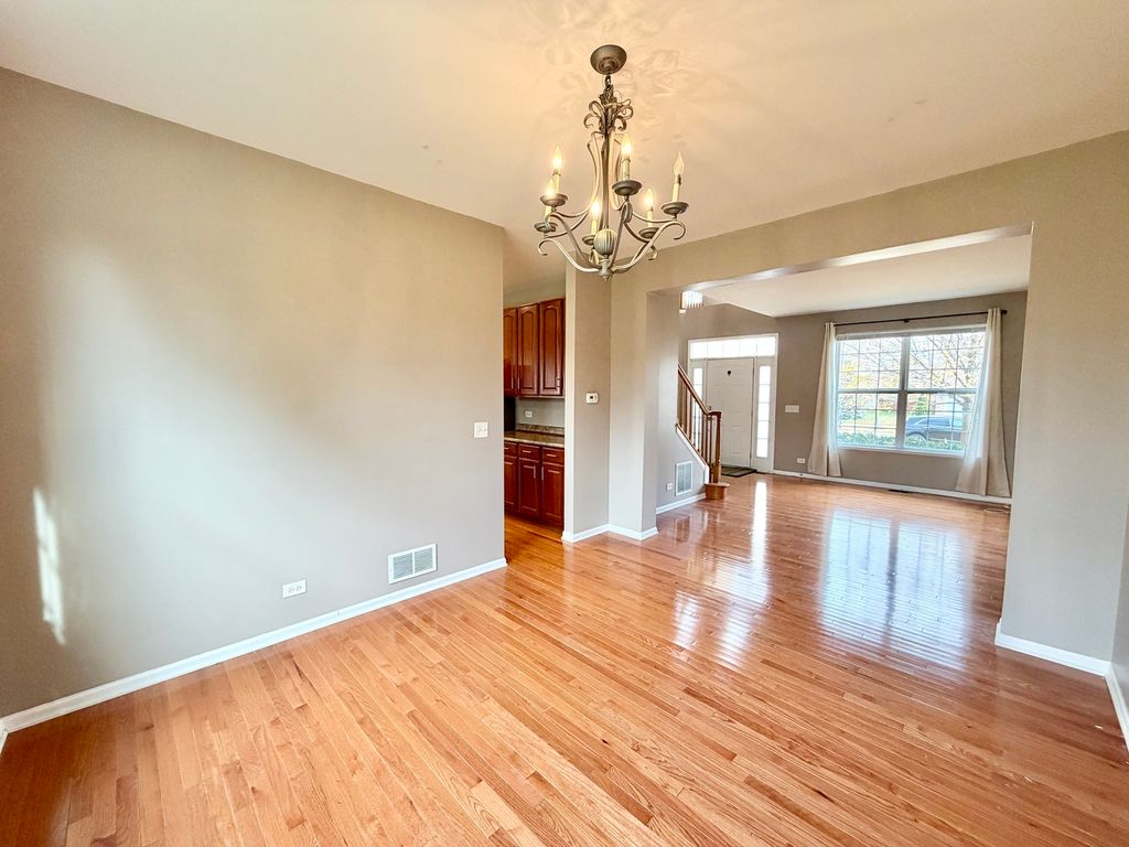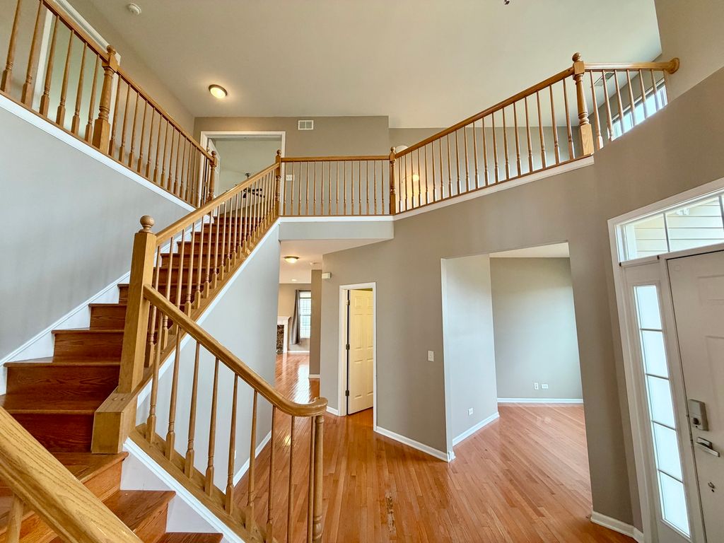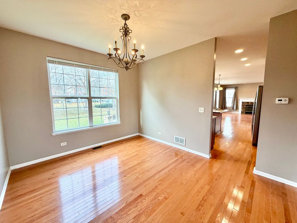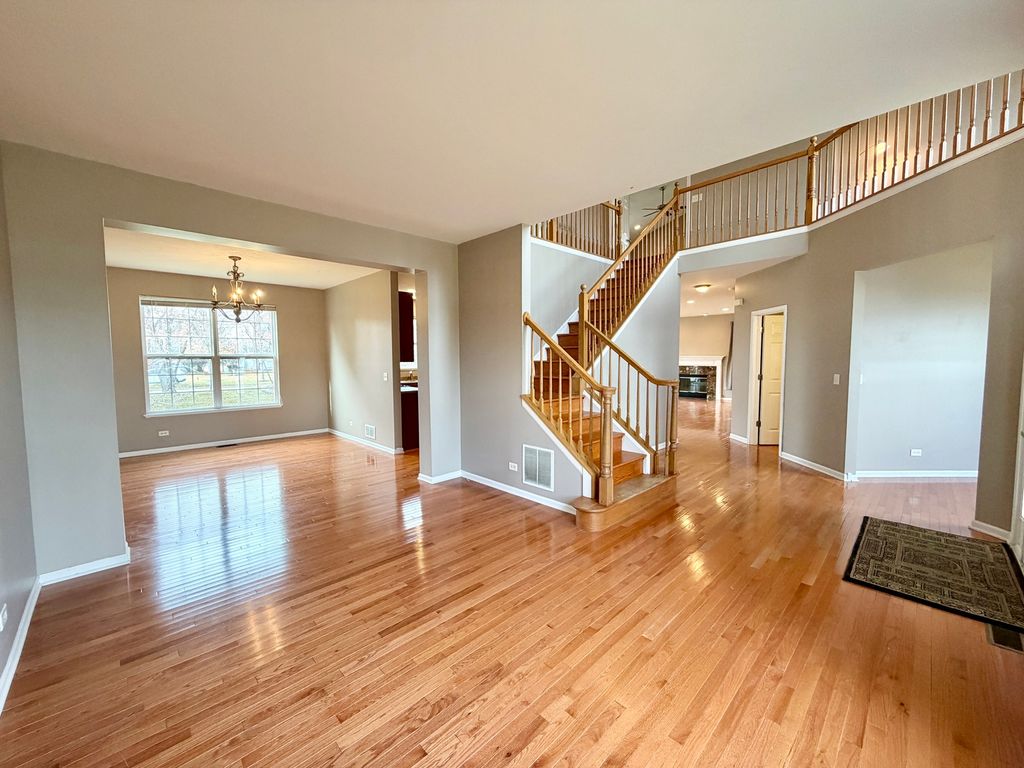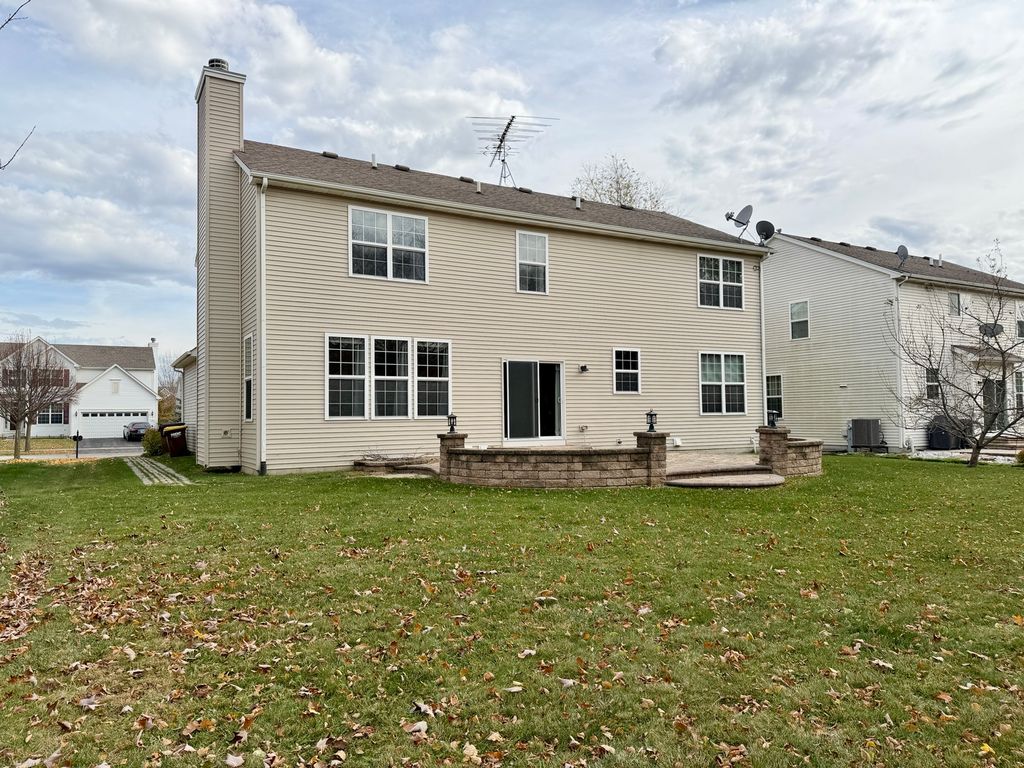 Welcome home to this stunning Hawthorn Model showcasing numerous upgrades and exceptional space throughout. The inviting two-story entryway sets the tone, featuring gorgeous hardwood floors and upgraded railings. A convenient first-floor office/den offers the perfect space for work or study. The spacious family room is warm and welcoming, centered around a cozy fireplace-ideal for relaxing evenings. The highly upgraded kitchen will impress with 42" cabinetry, stainless steel appliances, a center island with breakfast bar, pantry, and a generous dinette area. A formal living room, elegant dining room, large laundry room, and mudroom complete the main level. Upstairs, you'll find a luxurious primary suite with vaulted ceilings, a large walk-in closet, and a spa-like bath featuring a raised dual vanity, separate shower, and soaking tub. Three additional large bedrooms, a full bath, and a versatile loft provide plenty of room for everyone. Step outside to enjoy your oversized 20x20 paver patio-perfect for entertaining or family gatherings. The full basement with rough-in plumbing is ready for your finishing touches. Ideally located near I-90, Randall Road shopping, parks, and top-rated schools-this home truly has Upgrades Galore!