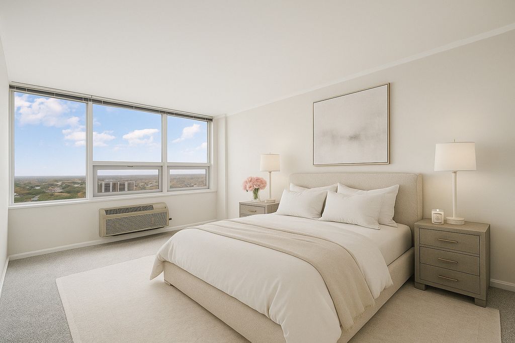 Imagine mornings by the water and evenings overlooking the city - this is everyday living at Horizon House. This spacious 2-bedroom, 2-bath residence offers approx. 1,600 sq ft of bright and inviting living space with unobstructed sunrise views over Lake Michigan, Hollywood Beach, and the park - plus stunning sunset views over the Chicago skyline. Enjoy a rare sunken living room, large picture windows, great closet space throughout, and a true four-season sunroom with operable windows - a perfect flexible space for year-round enjoyment. The updated kitchen features granite countertops and stainless steel appliances, and the large covered balcony is the perfect spot to relax, entertain, or take in the views. Horizon House offers everything you need for a resort-style lifestyle: 24-hour front desk, rooftop pool, hospitality room, two fitness centers, on-site management, and direct access to the lakefront trail and private access to Hollywood Beach. This is an unbeatable location just steps to the CTA express buses, Red Line, Bryn Mawr Historic District, Andersonville, and close to Mariano's, Whole Foods, dining, boutiques, and the lakefront. Additional storage cage included. Garage parking available for lease on-site.
