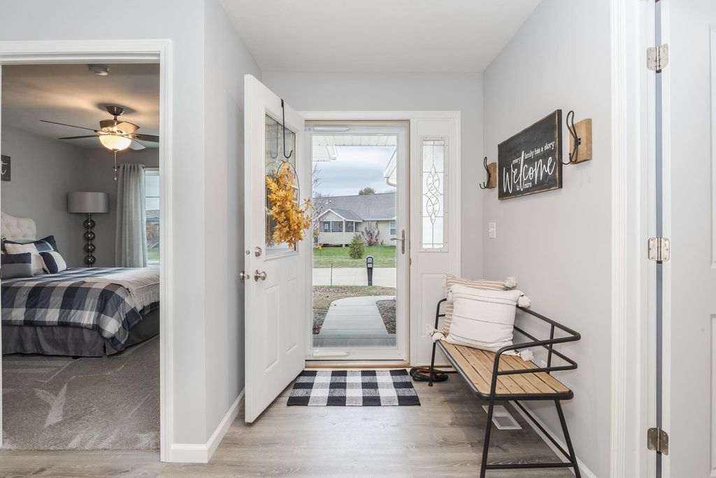 Welcome to 231 Eugene Dr, a beautifully crafted 2-bedroom, 2-bathroom home in the desirable Prairie Gardens. This zero-lot property showcases top quality construction with thoughtful details throughout, making it an outstanding value in today's market. The heart of this home features an open floor plan that seamlessly connects the living spaces, creating an inviting atmosphere perfect for daily living and entertaining. The stunning kitchen serves as the centerpiece, boasting elegant quartz countertops, premium dovetail soft-close drawers, and a complete suite of stainless steel appliances that combine style with functionality. Both bedrooms are located on the main level, offering single-floor living convenience. The primary bedroom impresses with a sophisticated trey ceiling featuring indirect lighting that creates a warm, ambient atmosphere. The adjoining primary bathroom includes a spacious shower and generous closet, providing both luxury and practical storage solutions. Need extra space for an office or relaxing? With the lower level just finished in 2022 with details as found on the main level with remarkable attention to detail. This lower level entertainment space features a stylish bar and an impressive built-in wall unit designed for television mounting, book display, and abundant storage. The unfinished portion of the basement leaves plenty of space for storage or future bed 3 having an egress window, providing flexibility to customize the space according to your specific needs and preferences. With a very low HOA of only $85/month Prairie Gardens residents enjoy maintenance-free living through HOA providing lawn care, snow removal, and garbage collection. Also included is a dedicated garden space if you would like to grow your own vegetables. The location provides excellent access to community amenities, with Maxwell Park just over a quarter-mile away for outdoor recreation. Daily conveniences are easily accessible, including nearby grocery shopping and schools. This property represents an exceptional opportunity to own a well-built, move-in-ready home that combines quality craftsmanship, modern amenities, and community convenience in one attractive package.