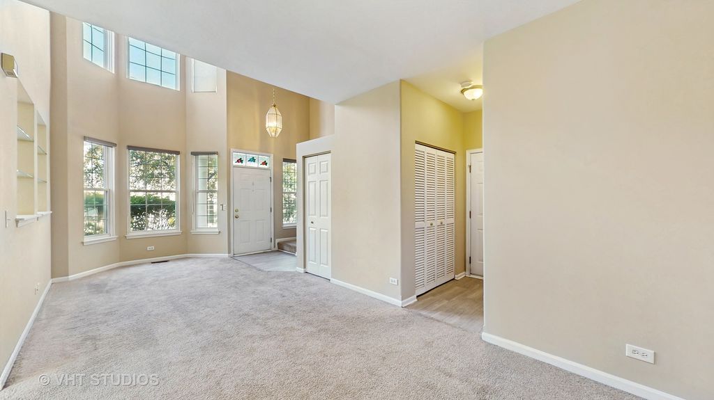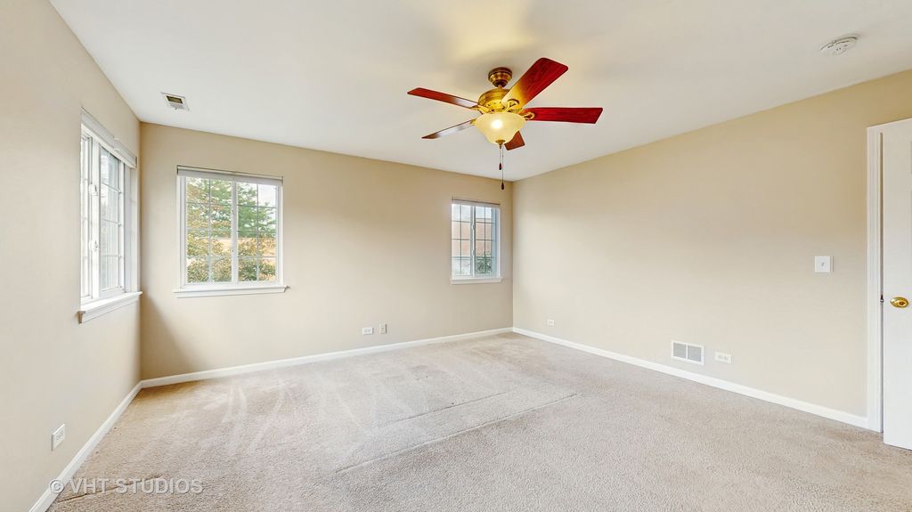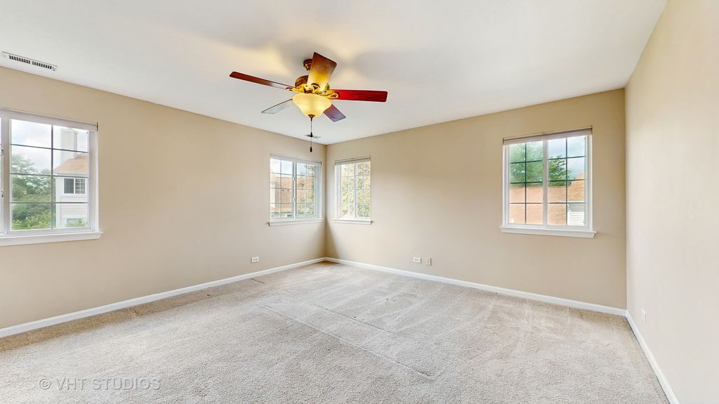 The Best Deal in Winding Creek, Algonquin! Light-filled and inviting, this 2-story end-unit townhome offers 3 bedrooms, 2.1 baths, and an open floor plan designed for modern living. The island kitchen features updated granite countertops, stylish flooring, and opens seamlessly to the family room with a cozy gas log fireplace-perfect for gatherings or quiet evenings at home. Step outside to a private patio ideal for relaxing or entertaining. The primary suite impresses with a walk-in closet and spa-like bath featuring dual raised vanities, a large soaking tub, and an updated glass-and-tile shower. Upstairs, enjoy the convenience of a second-floor laundry room and two generously sized bedrooms, each with ceiling fans. Recent updates include a new A/C and water heater (2023), along with contemporary light fixtures and window treatments throughout. Tucked away in a premium cul-de-sac location, this home truly checks all the boxes-style, comfort, and value!