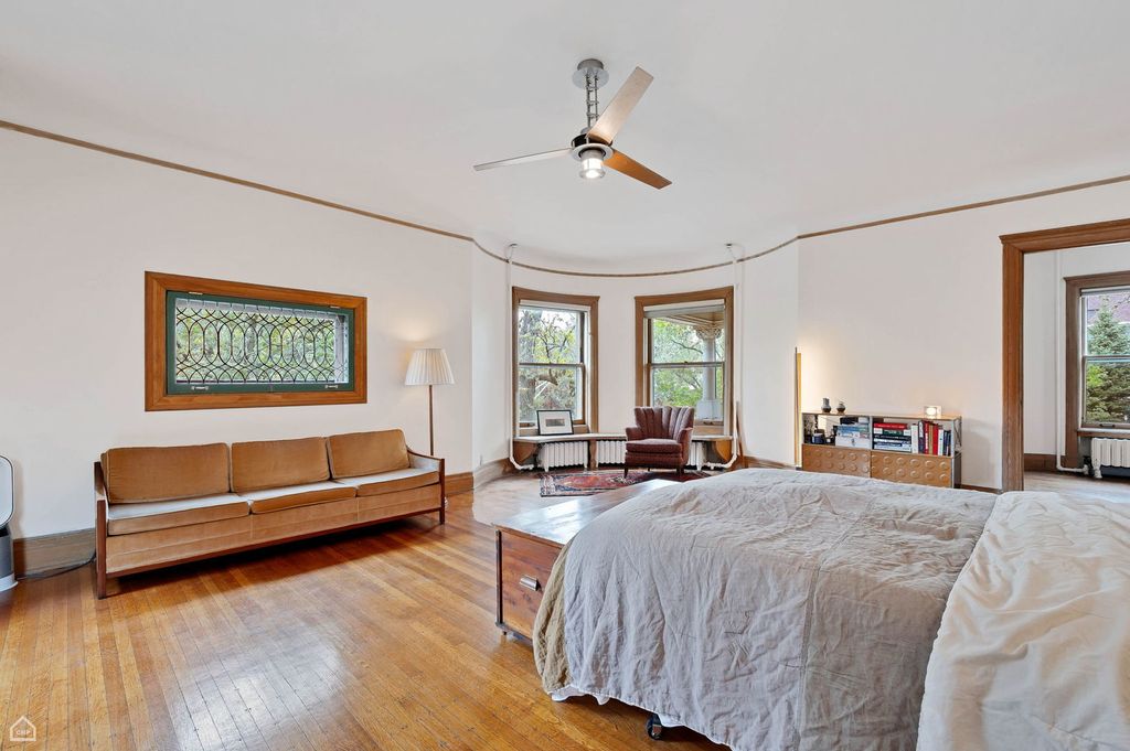 First time on the market in over 25 years, this amazing 3-story, 5000 sq ft Queen Anne home offers 6 spacious bedrooms and 4.5 baths in a prized location on one of the most coveted blocks in the South Kenwood Historic Landmark District. Built in 1891 by the well-regarded firm of Patton & Fisher, it is sheathed in beautiful New York red slate, in a distinctive fish-scale pattern, above an imposing solid limestone base. Lovingly and sensitively maintained by its current owner, this home contains a wealth of stunning vintage detail, including original stained moldings, high ceilings, and hardwood floors throughout. The first floor features an impressively large and gracious entrance hall, open to the distinctive oval living room with wood-burning fireplace, paneled formal dining room, and elevated music area. The well-upgraded kitchen has plenty of room for a large table and overlooks the expansive private backyard with outdoor deck and patio areas, a convenient storage shed, and a highly-prized two-car garage. Upstairs, the 2nd and 3rd floors each offer 3 sizable bedrooms and two baths. The 3rd floor also features a large cozy tree-top family room. The house has fully unobstructed exposures on three sides, so has abundant natural light throughout. Though located on a quiet tree-lined street with little thru traffic, Lake Shore Drive access, the Metra station, and downtown bus stops are just a short distance away.