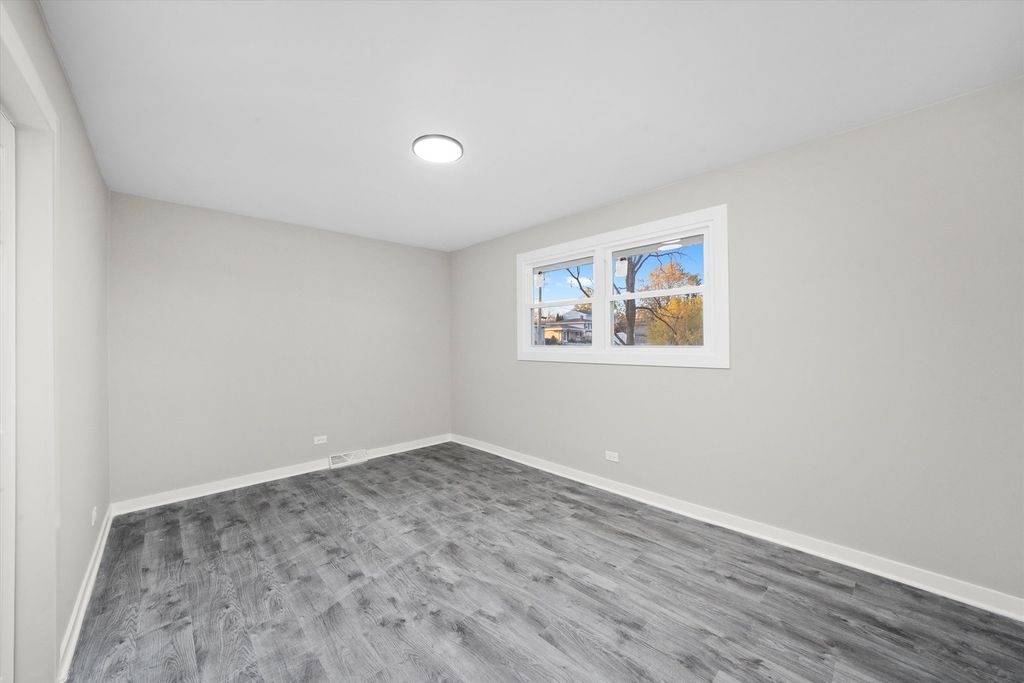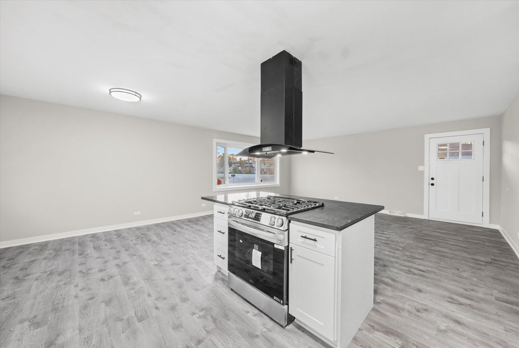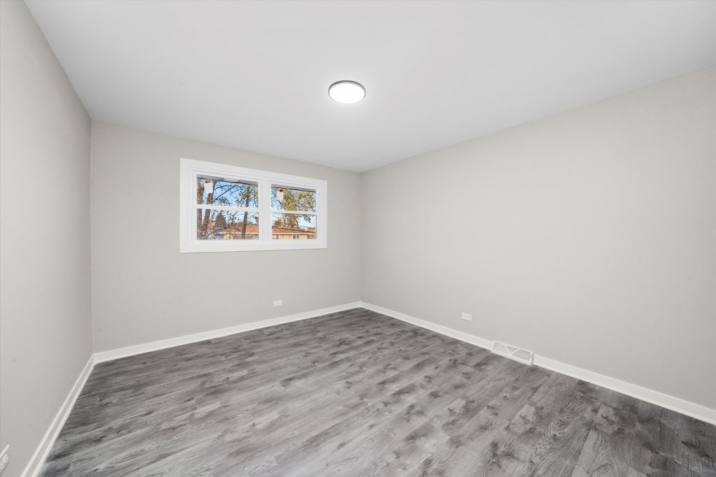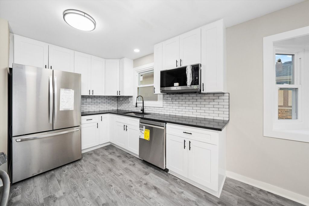 Remodeled 5-bedroom, 2.5-bath split-level home located in Justice (Cook County). Features a modern open-concept kitchen with island, quartz countertops, stainless steel appliances, and decorative range hood. Home includes two furnaces, two central air units, and two water heaters for comfort and efficiency. Spacious bedrooms, stylish bathrooms, and laundry area with washer and dryer. Exterior highlights include landscaped yard, red mulch accents, and a detached 2-car garage. Convenient location near I-55, I-294, parks, and schools - a perfect blend of space, style, and function.