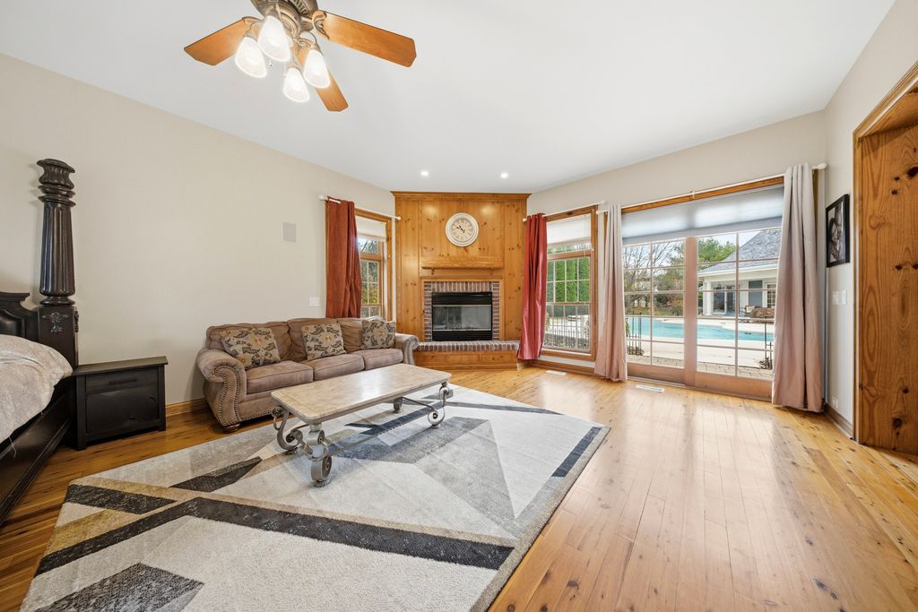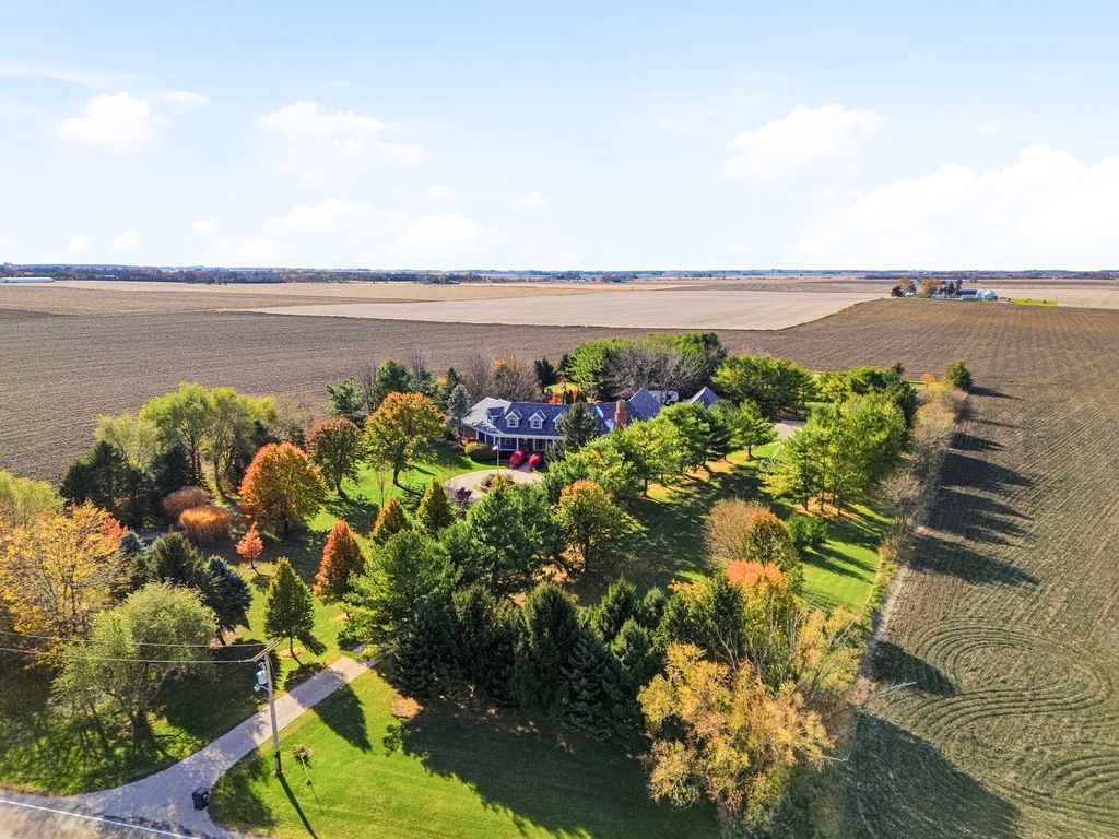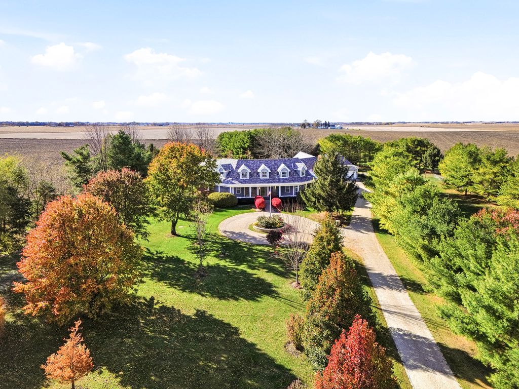 Escape to peace and privacy in this stunning 5,000 sq. ft. custom estate, nestled on five acres of tranquil countryside. Designed to capture the beauty of rural living, this architectural gem is filled with natural sunlight and showcases breathtaking sunset views across the entire back of the property. The outdoor setting is truly a retreat-an expansive brick paver patio surrounds the sparkling saltwater Gunite pool, relaxing hot tub, and charming gazebo, offering multiple seating areas for entertaining or unwinding in your private summer oasis. Inside, the home features a gourmet kitchen tailored for the inspired chef, complete with a walk-in pantry, granite countertops, a deep copper penny-nail sink, and high-end appliances. The attached breakfast nook overlooks a wooded backdrop of mature trees and fruit plantings. Adjacent, the inviting four-seasons room provides the perfect place to relax year-round, while the nearby home office offers custom Knotty Pine built-ins and a cozy wood-burning fireplace. The spacious family and living room combination is ideal for gatherings, showcasing a grand stone fireplace, wood columns, and custom built-ins. The two-story sunlit hallway leads to a private first-floor primary suite, a true retreat featuring a fireplace, direct patio access, a luxurious bath with a separate tub and shower, water closet, and a large walk-in closet with an additional laundry hookup. The first floor also includes a convenient laundry room equipped with a Samsung washer and dryer featuring Ozone Eco Pure technology, along with a full and half bath for added functionality. Upstairs, you'll find three additional bedrooms and two full bathrooms, while the partially finished 1,000 sq. ft. basement is ready for your finishing touches. Extensive updates ensure peace of mind: all windows were replaced in 2019, and that same year brought a new roof, vinyl siding, Hardie board trim, gutters, and garage doors. All four home furnaces were replaced in 2019, with an additional garage furnace installed in 2017. The heated 4-car garage, featuring four separate doors, provides exceptional accessibility for vehicles, equipment, or outdoor hobbies. Additional upgrades include a comprehensive water and air filtration system, a newly resurfaced driveway, fresh pool paint, refinished kitchen cabinets and bookshelves, coated stone fireplace and stove brickwork, new door locks, updated landscaping, and more. Enjoy added amenities like a new pool fence, dual dog-fenced play areas, replaced pool pumps, new gas lines to the furnace, replacement exterior lamps, refinished basement flooring and paint, updated air vent covers, and a new chimney cap. Perfectly suited for homesteading or independent living, this extraordinary property combines country charm with modern comfort, offering a lifestyle of space, serenity, and sophistication.