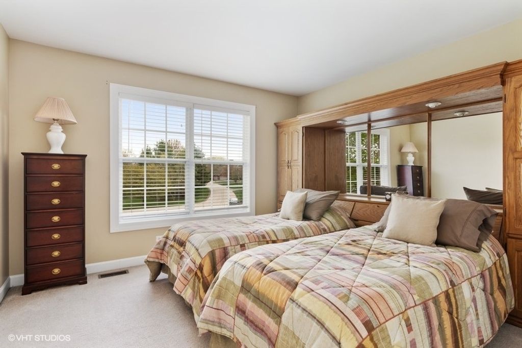 Original owner home has been very well maintained! Light neutral interior with white trim & white doors! Hardwood floors have been refinished. Freshly painted exterior with new gutters, and new roof 2021! Spacious FR with cathedral ceiling and gas start/wood burning FP. First floor office and large eat in kitchen with solid surface counters and 42" maple cabinets. Huge primary suite with sitting area and walk in closet. Finished basement with rec room, exercise room, flex space, powder room and large storage area. All this on an acre and in coveted Prairie Ridge HS boundaries!