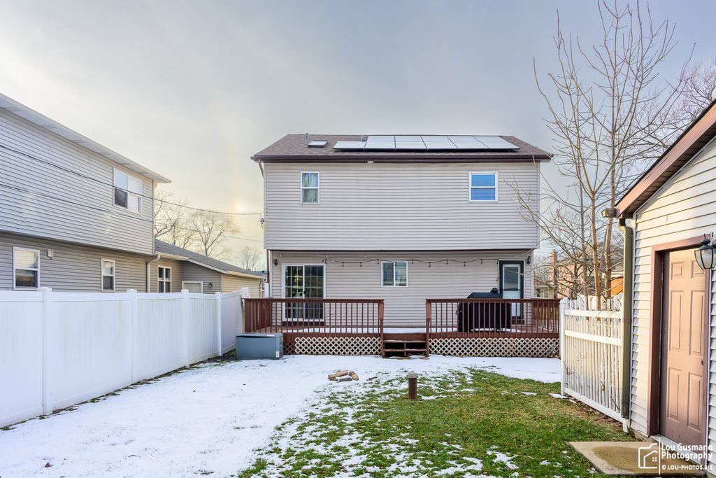 Welcome the New Year in this beautifully updated, move-in-ready 2-story home. Freshly painted throughout, it features new luxury flooring on the main level and a flexible, comfortable layout. The main level offers a bright living room, an updated kitchen with quartz countertops, and a family room that can also function as a formal dining room, along with a convenient half bath-perfect for both everyday living and entertaining. The upper level includes a spacious primary suite with a walk-in closet, whirlpool tub, and separate shower, plus two additional bedrooms connected by a Jack-and-Jill bath. The finished basement adds exceptional versatility with a large recreation room, a separate flex room ideal for an office, exercise space, or playroom, and a spacious laundry/utility room with mechanicals and storage. Outdoor living is enhanced by a large deck overlooking the fully fenced backyard, a welcoming front porch, and a detached 2.5-car garage. Additional highlights include solar panels, a whole-house generator, well water with city sewer, Roof and HVAC (approx. 2021), a tankless water heater (2022), Water Softener & house filter. Welcome Home